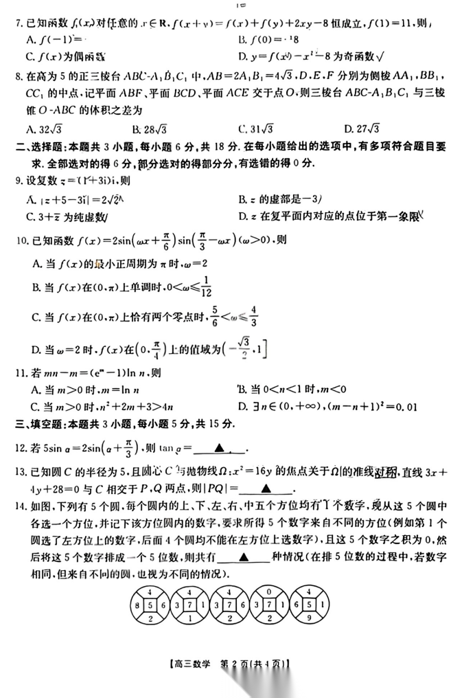 【广东卷】广东省金太阳2025-2026学年高三下学期2月开学考试(26-254C)(2.26-2.27) 数学物理地理试题卷+答案