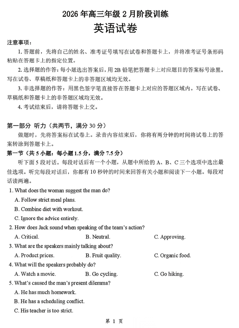 【补齐重发】【湖北卷】湖北省云学联盟2026年高三年级2月阶段训练(2.24-2.25).pdf 全科试题卷+答案 【补齐重发】【湖北卷】湖北省云学联盟2026年高三年级2月阶段训练(2.24-2.25).pdf ...
