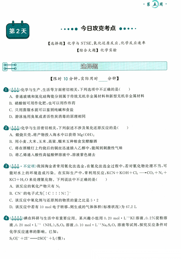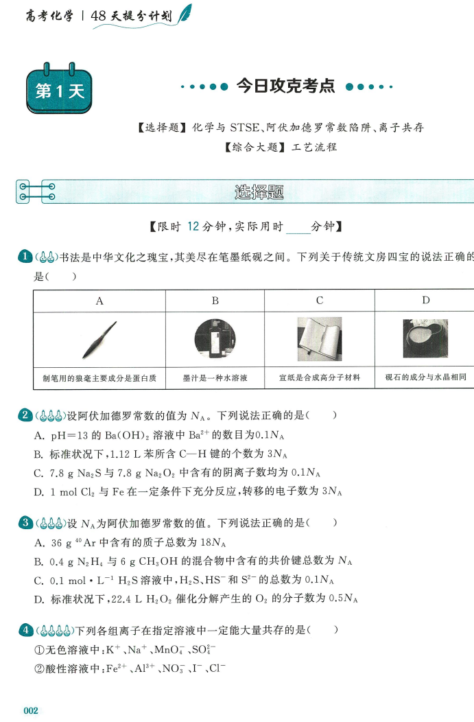 【高考化学】【育甲高考】育甲高考高考化学8周48天提分计划(48天科学规划限时训练8轮循环巩固针对练习300道典型模拟专题突破)(郭有威著)
