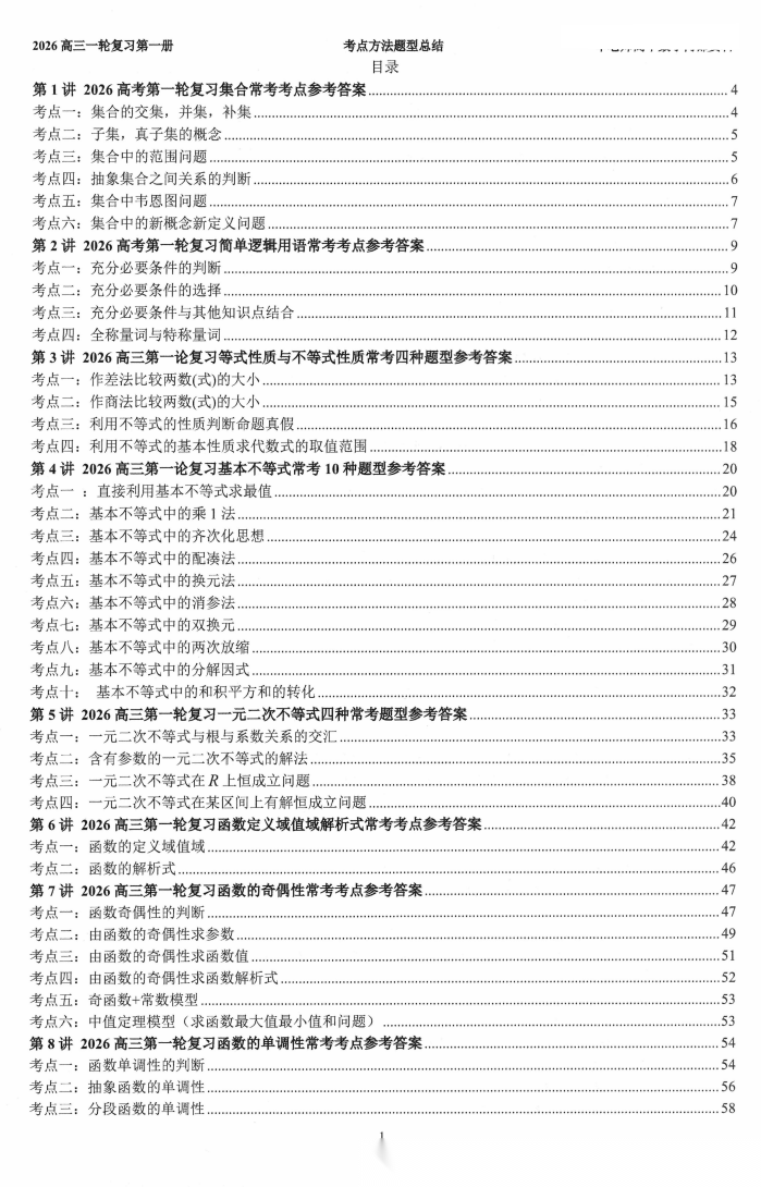 【高考数学】【数学名师申老师】2026新高考高中数学题型总结--62大(讲)考点方法总结讲义试题(上册+下册)-+答案解析册(上下册)(完整版)