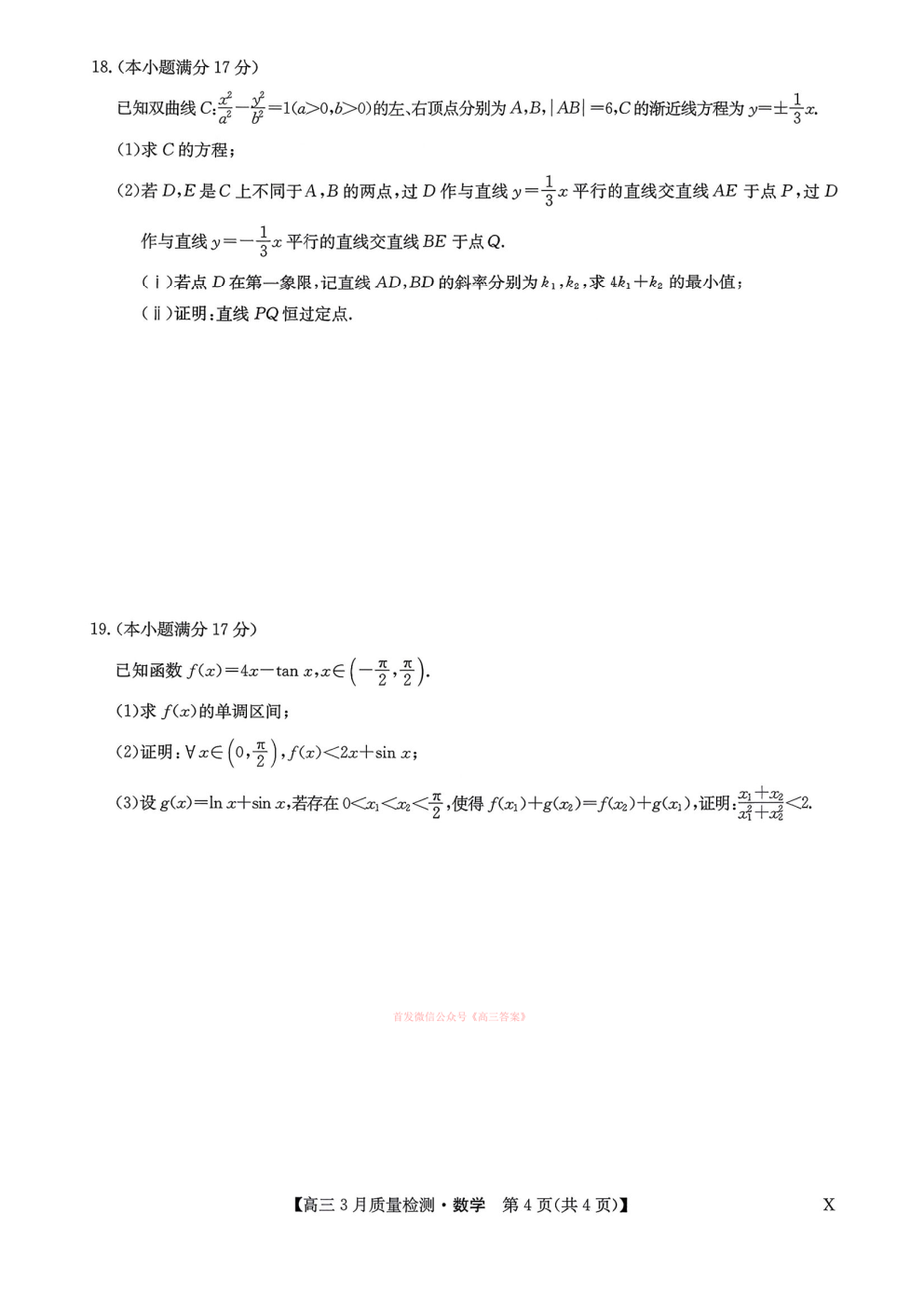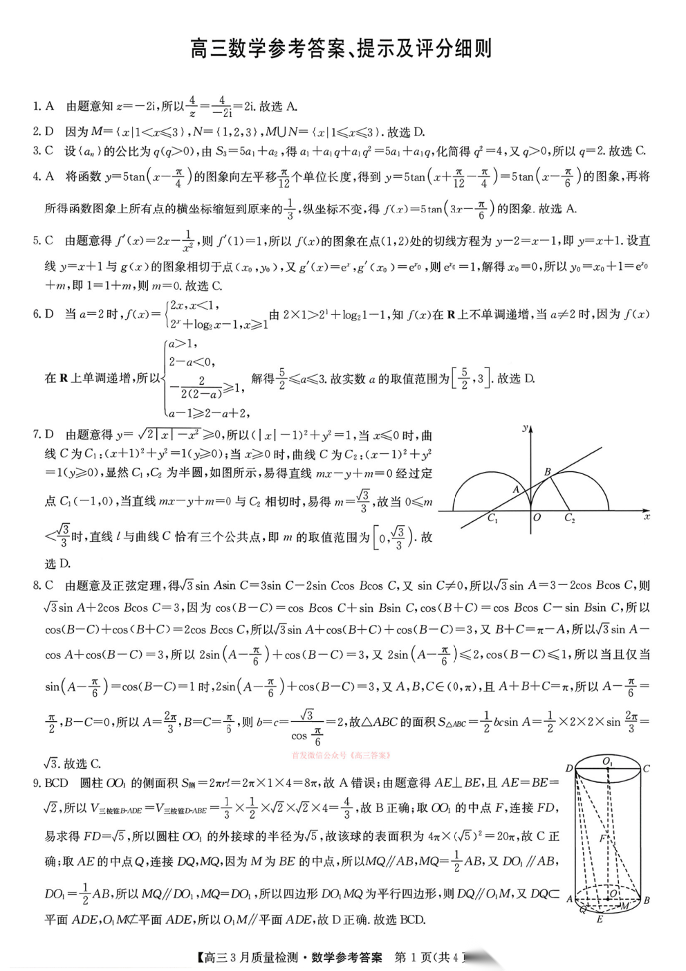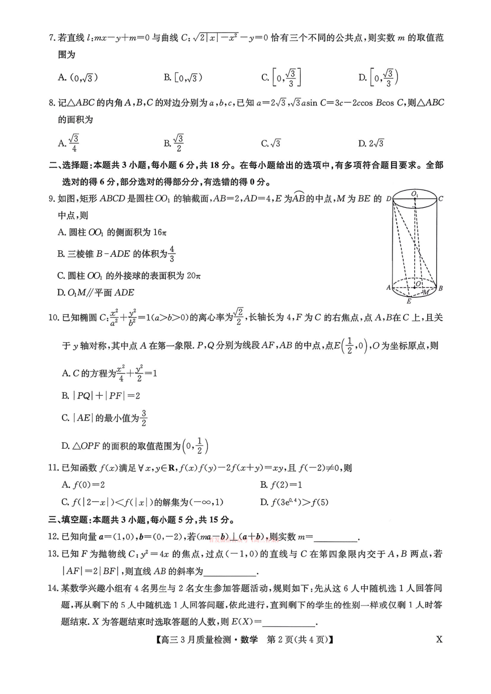 2026届九师联盟高三3月质量检测答案