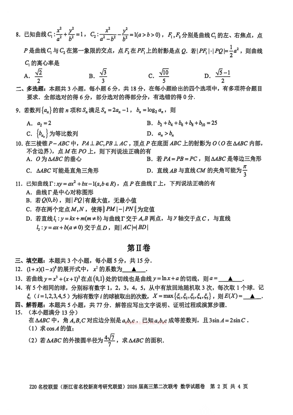 【全科】2026年湖北省云学联盟高三年级2月阶段训练 【全科】2026年湖北省云学联盟高三年级2月阶段训练