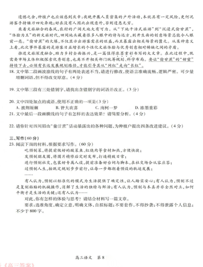 【自做语文】浙江高三七彩阳光联盟返校考试语文试卷及自做答案!仅供参考 【自做语文】浙江高三七彩阳光联盟返校考试语文试卷及自做答案!仅供参考