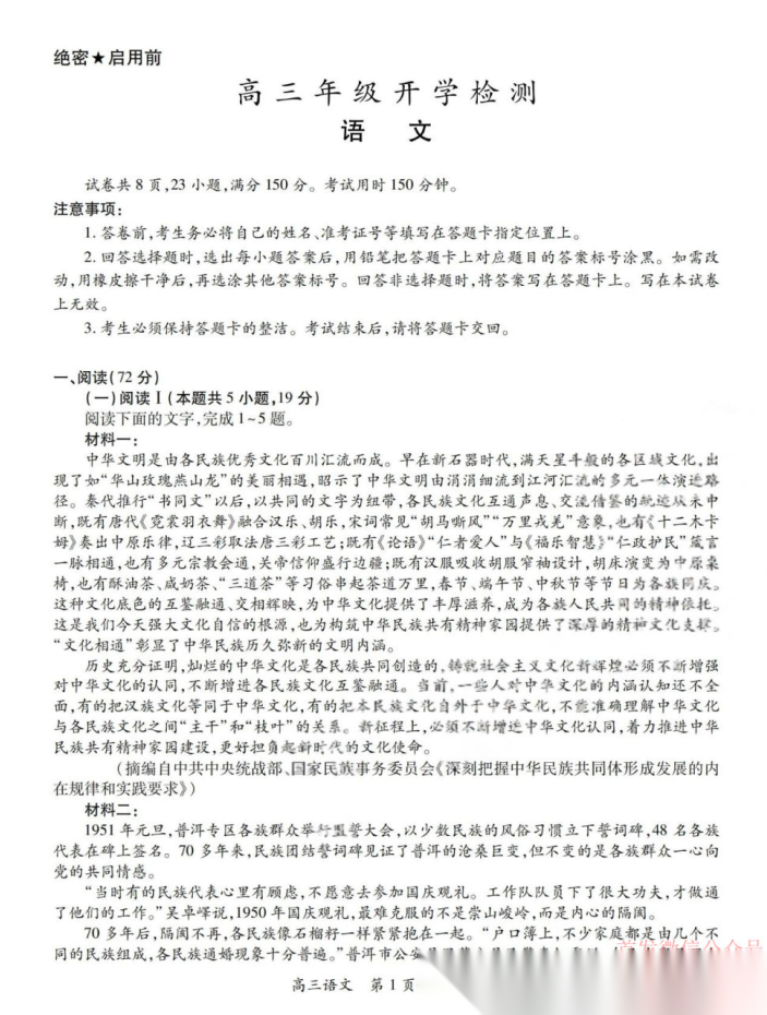 江西省重点中学协作体2026届高三第一次联考 江西省重点中学协作体2026届高三第一次联考