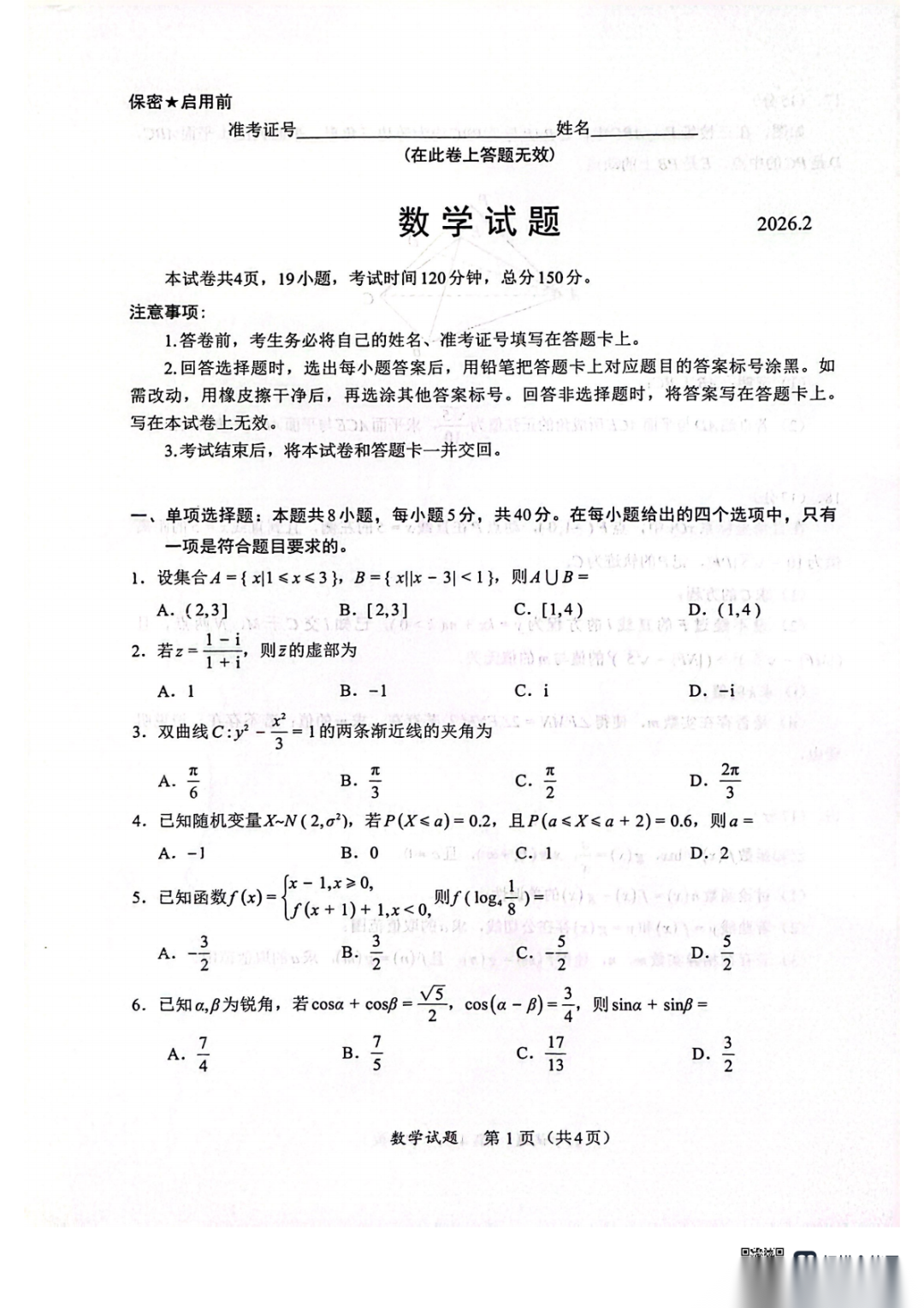 【全科】重庆市第八中学2026届高三下学期2月入学考试 【全科】重庆市第八中学2026届高三下学期2月入学考试