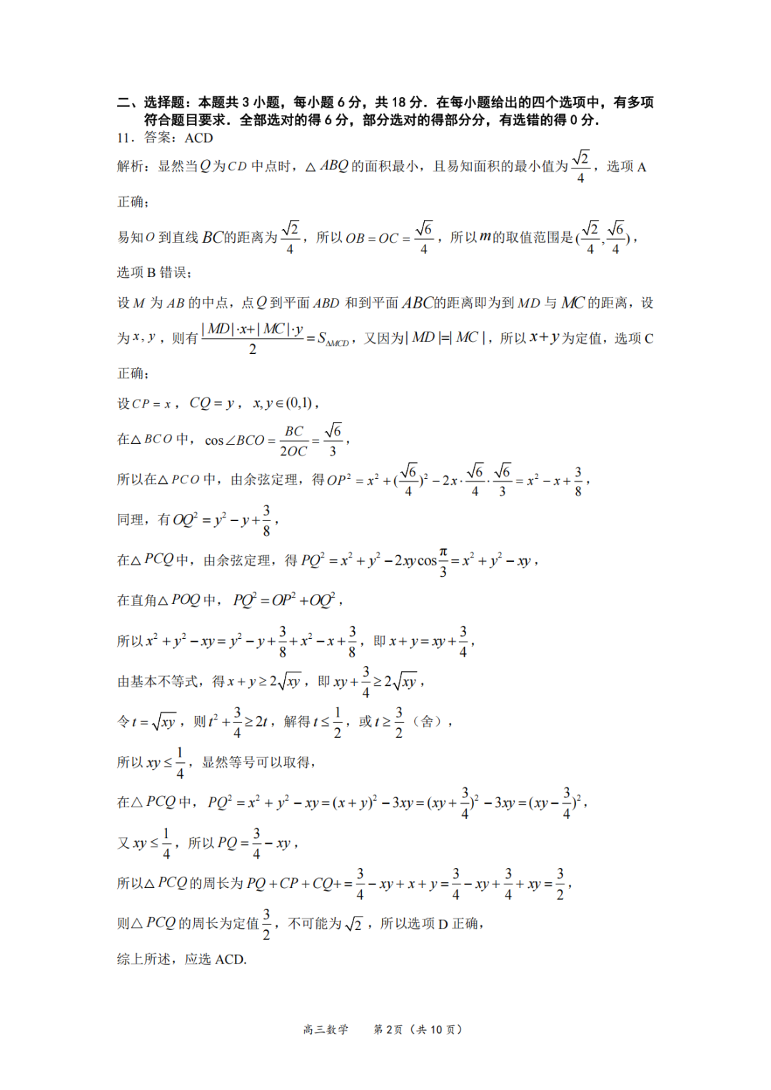2026广东高三2月联考答案 2026广东高三2月联考答案
