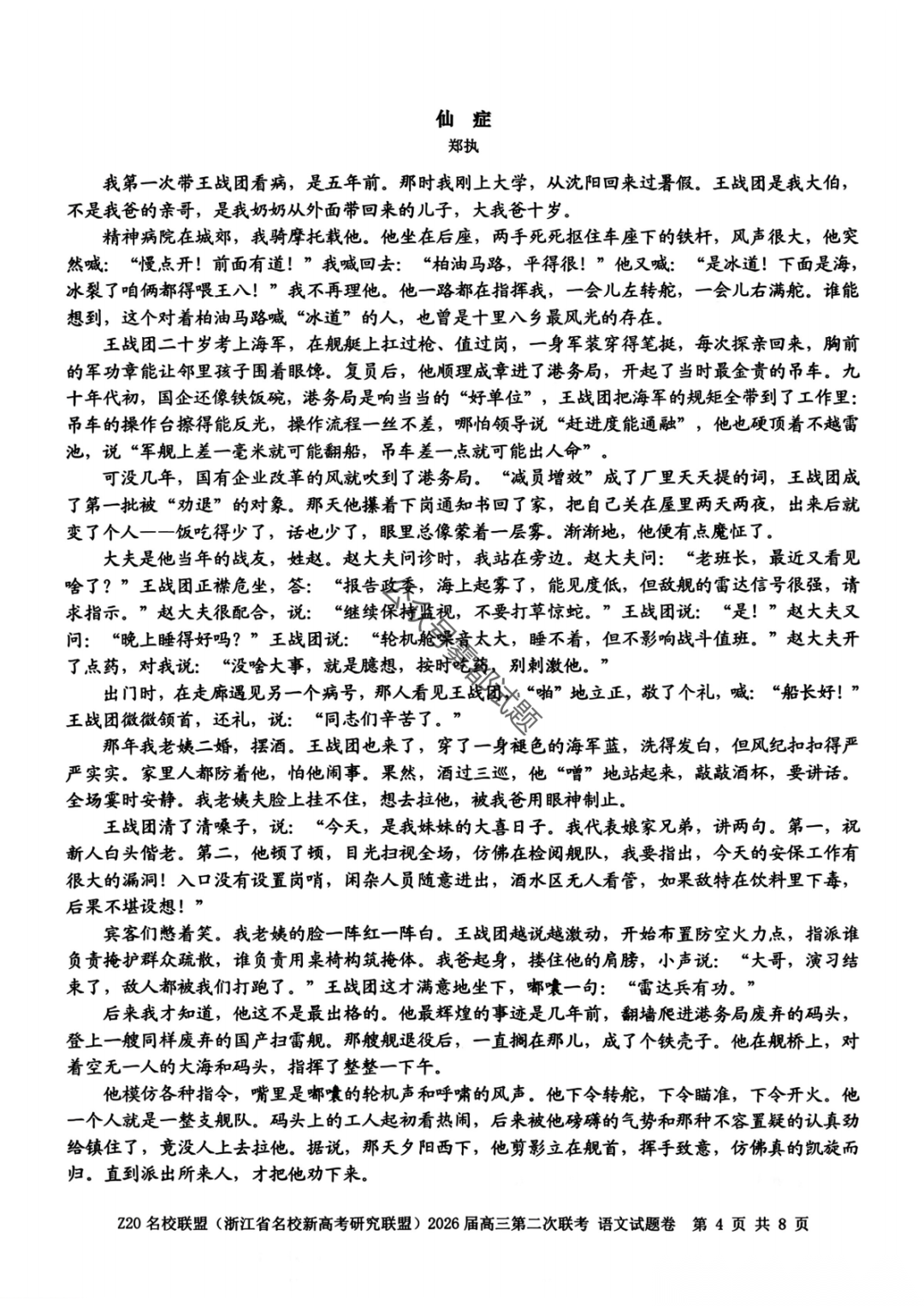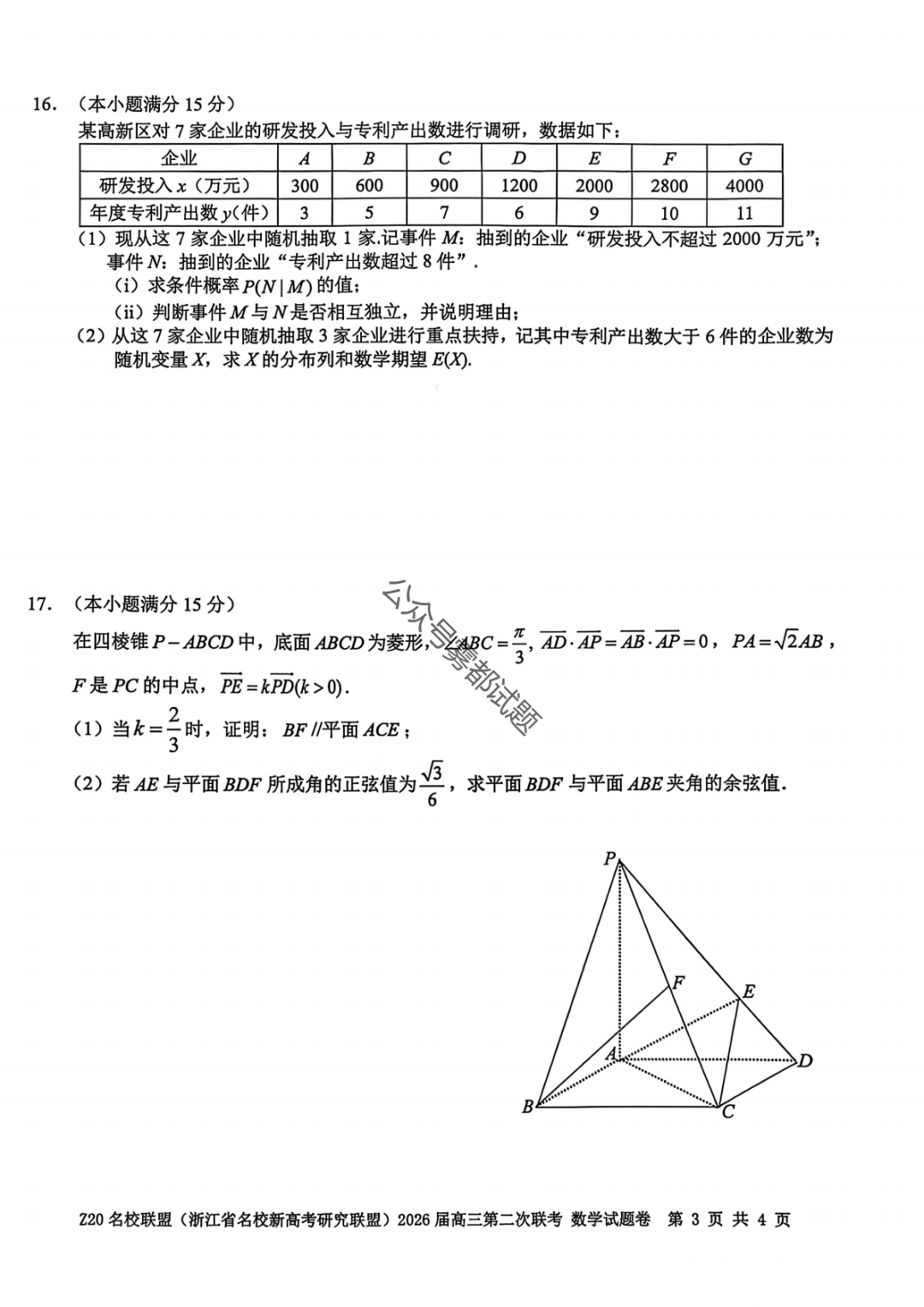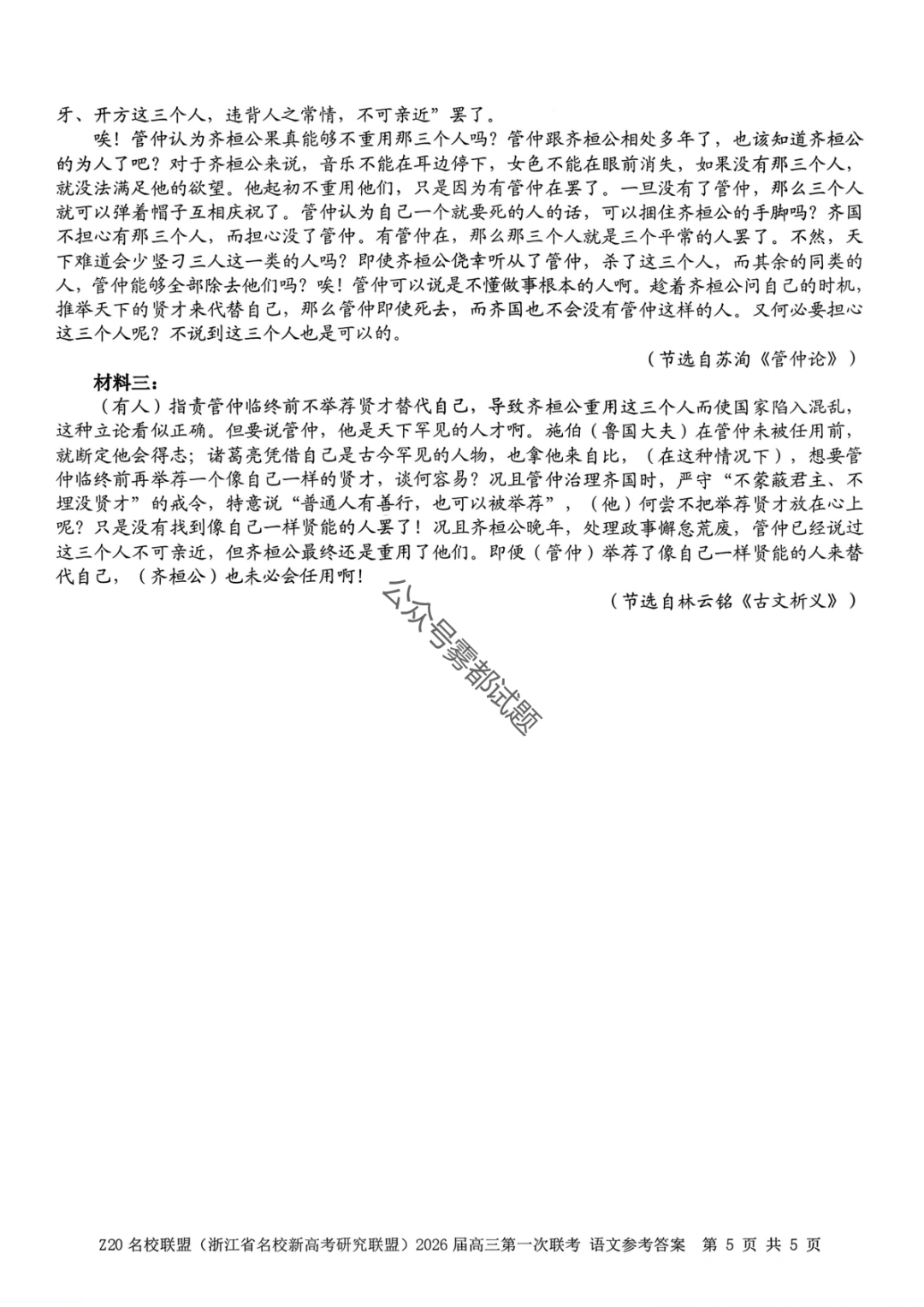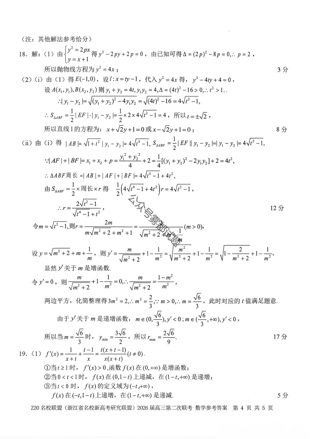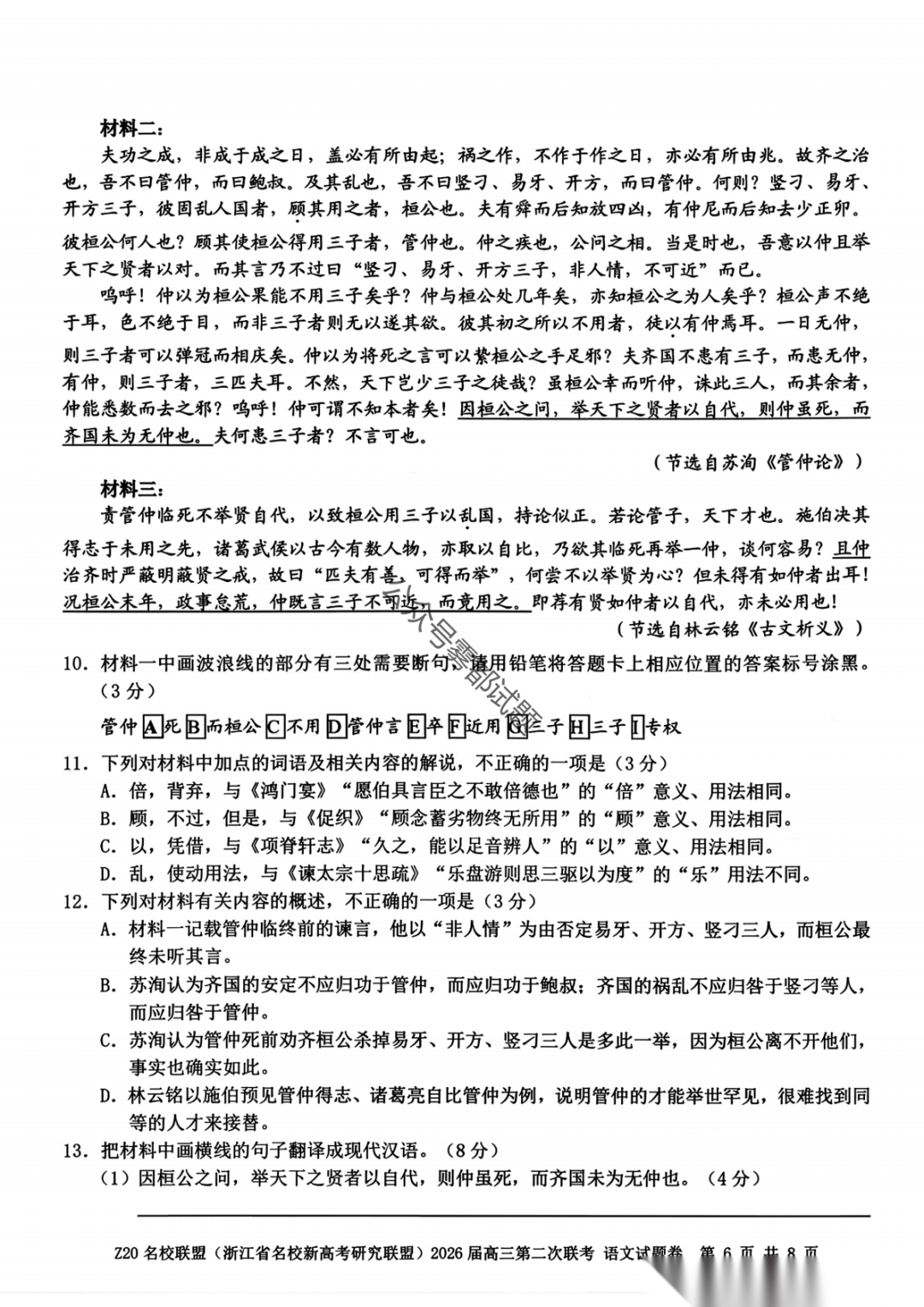【补充语文数学】Z20名校联盟(浙江省名校新高考卷研究联盟)2026届高三第二次联考