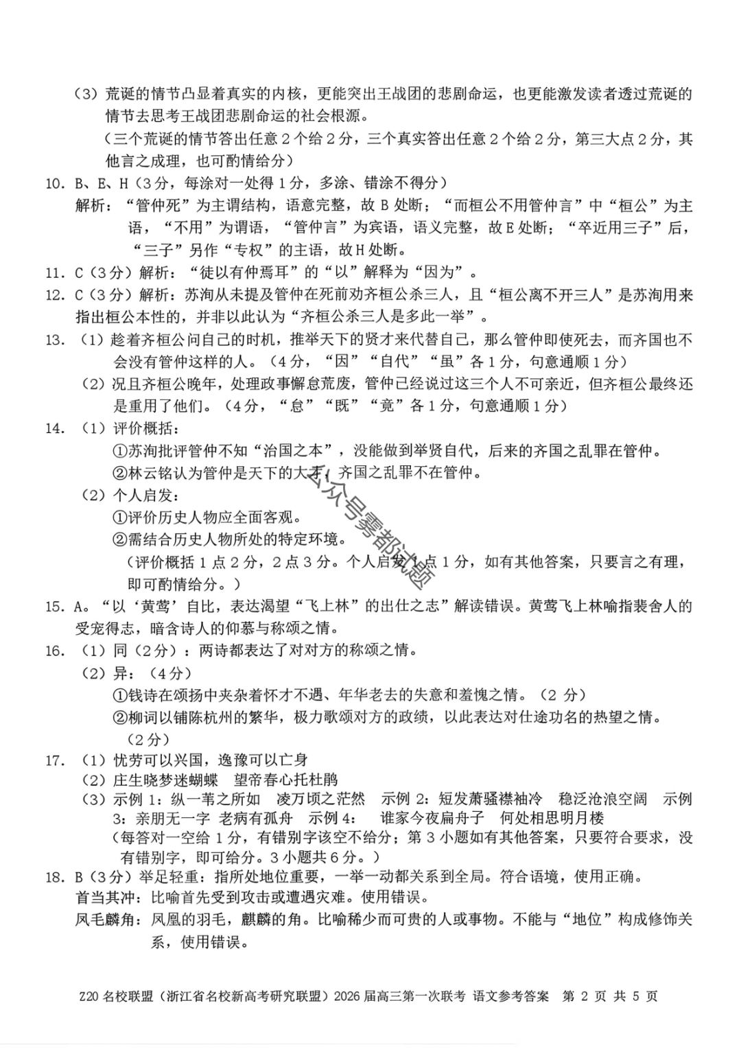 浙南名校、金兰教育、七彩阳光、精诚联盟2026年2月返校考答案 浙南名校、金兰教育、七彩阳光、精诚联盟2026年2月返校考答案