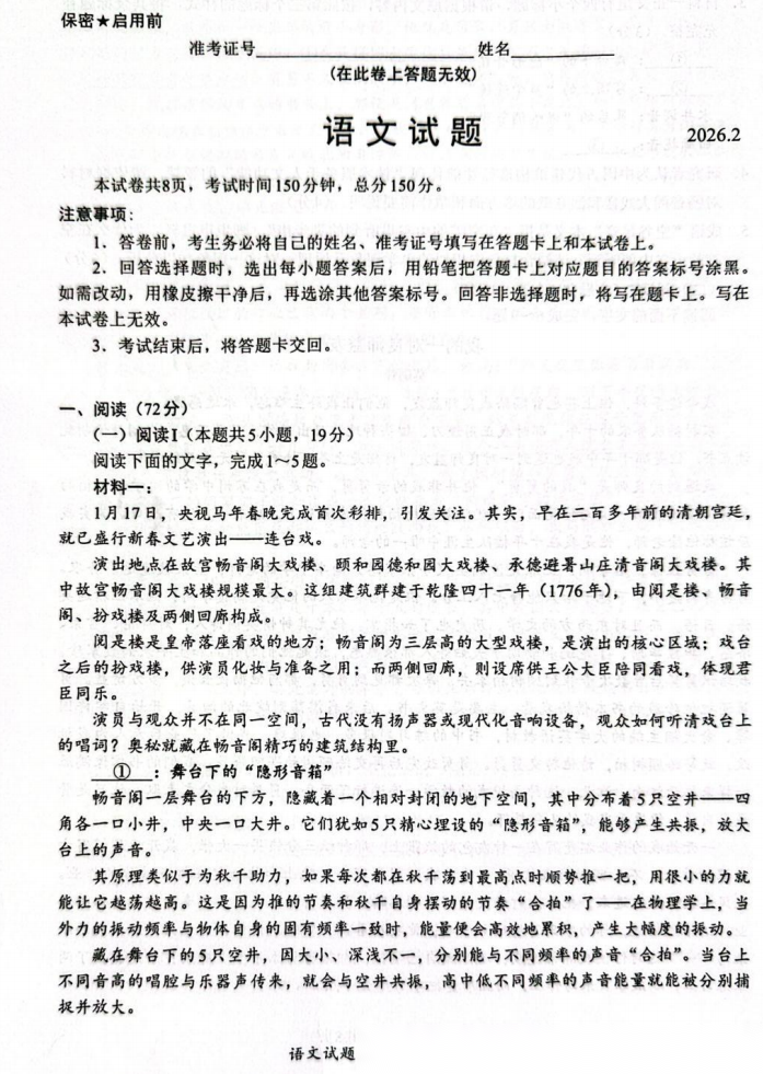 【福建卷】福建省名校联盟全国优质校2026届高三年级二(2)月开学大联考(2.25-2.27) 全科试题卷(缺生物)+答案