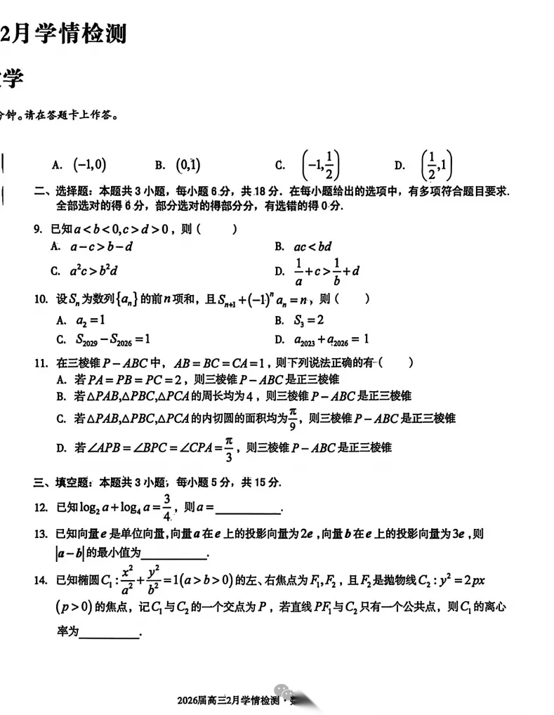 【福建卷】福建省名校联盟全国优质校2026届高三年级二(2)月开学大联考(2.25-2.27) 全科试题卷(缺生物)+答案 【福建卷】福建省名校联盟全国优质校2026届高三年级二(2)月开学大联考(2.25-2.27) ...