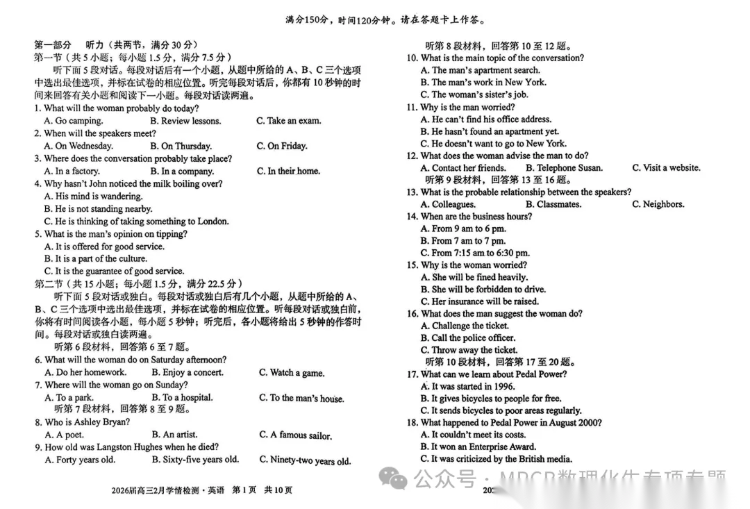 【贵州卷】贵州省贵阳市2026年高三年级2月适应性考试(一)(贵阳一模)(2.27-2.28) 全科试卷(数学英语28日考)+答案 【贵州卷】贵州省贵阳市2026年高三年级2月适应性考试(一)(贵阳一模)(2.27-2.28) 全科试卷(数学...