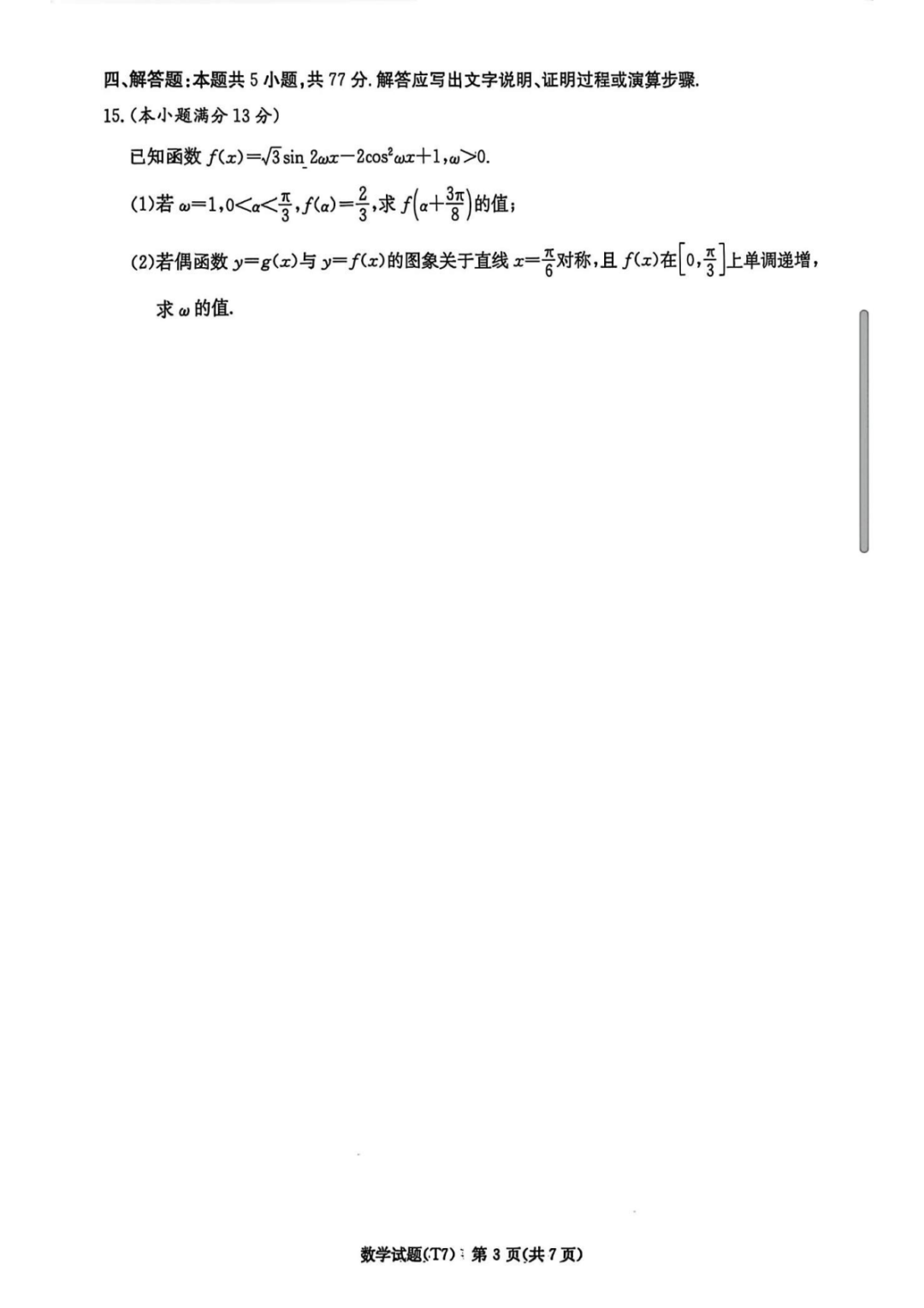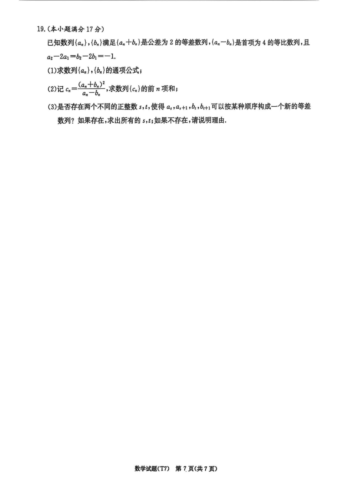 湖南师大附中2026届高三月考试卷七答案 湖南师大附中2026届高三月考试卷七答案