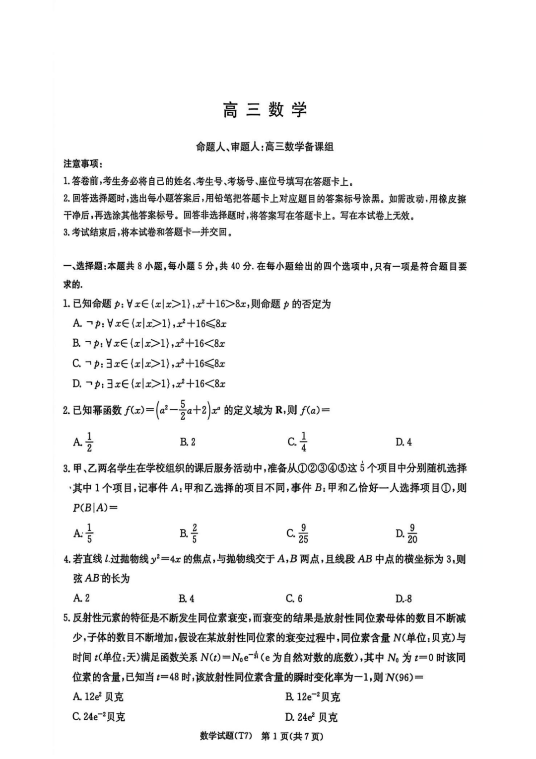 成都七中高2026届高三入学考试 成都七中高2026届高三入学考试