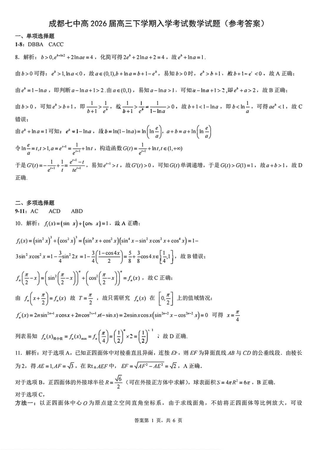 【全科】四川省成都七中2026届高三下学期入学考试