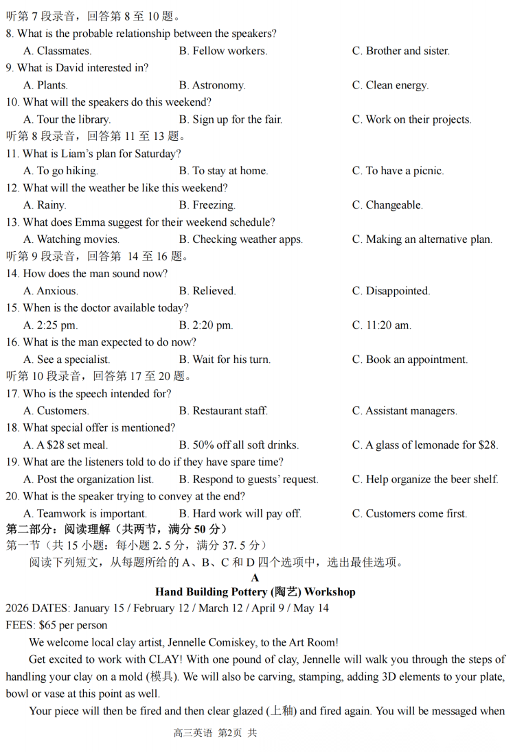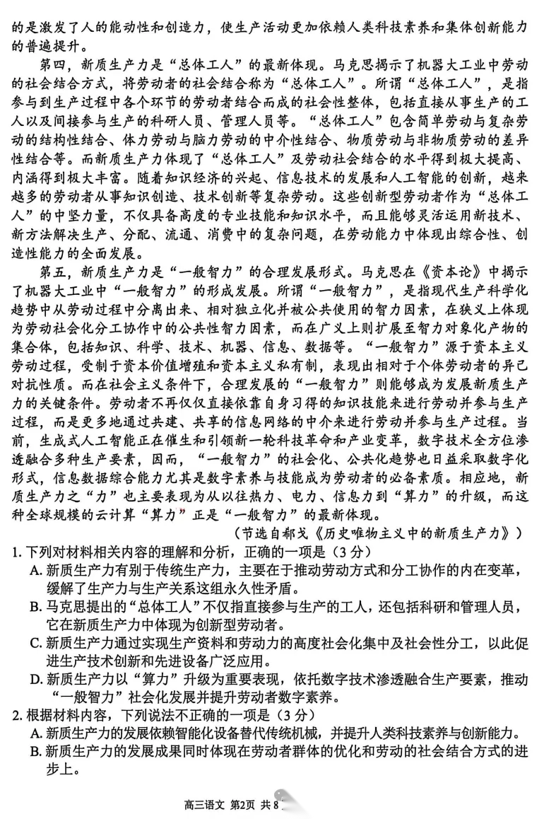 【超清无水印】:高三,安徽省·A10联盟2026届高三下学期2月开学学情检测(全) 【超清无水印】:高三,安徽省·A10联盟2026届高三下学期2月开学学情检测(全)