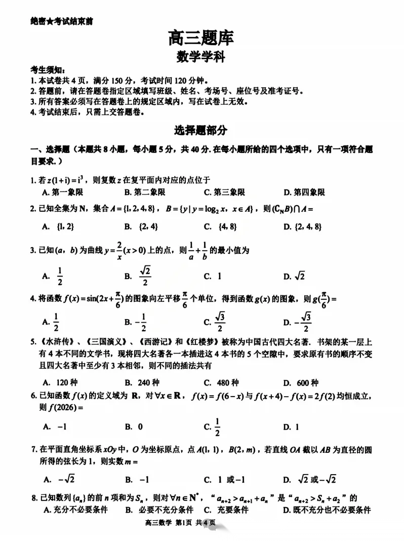 【超清无水印】:高三,Z20名校联盟(浙江省名校新高考研究联盟)2026届高三第二次联考(全) 【超清无水印】:高三,Z20名校联盟(浙江省名校新高考研究联盟)2026届高三第二次联考(全)