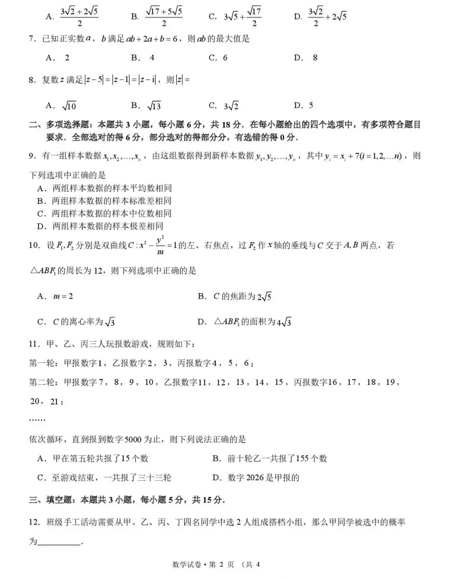 【超清无水印】:高三,Z20名校联盟(浙江省名校新高考研究联盟)2026届高三第二次联考(全) 【超清无水印】:高三,Z20名校联盟(浙江省名校新高考研究联盟)2026届高三第二次联考(全)