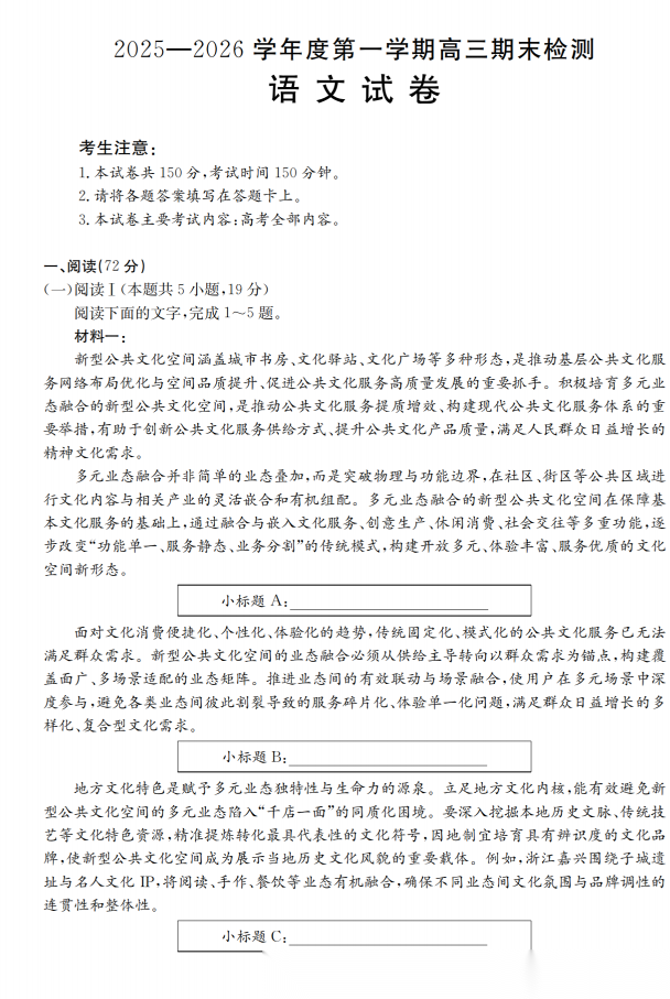 江西省重点中学协作体2026届高三第一次联考 江西省重点中学协作体2026届高三第一次联考