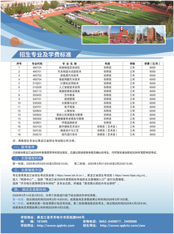 齐齐哈尔高等师范专科学校2026年单独招生简章