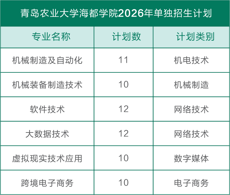 青岛农业大学海都学院2026年单独招生和综合评价招生专业计划 2026-02-24 -