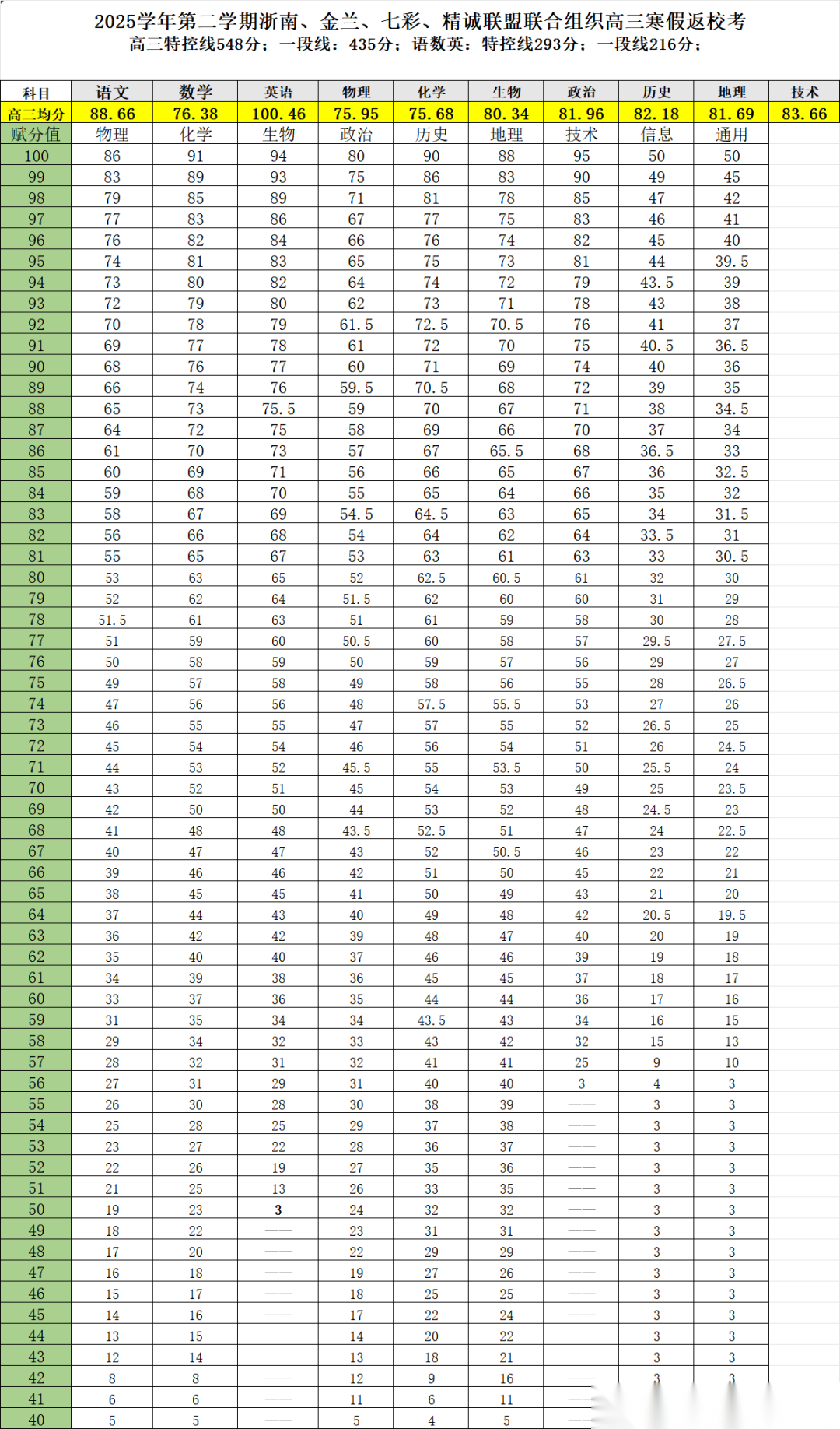 浙南名校、金兰教育、七彩阳光、精诚联盟2026年2月返校考分数线