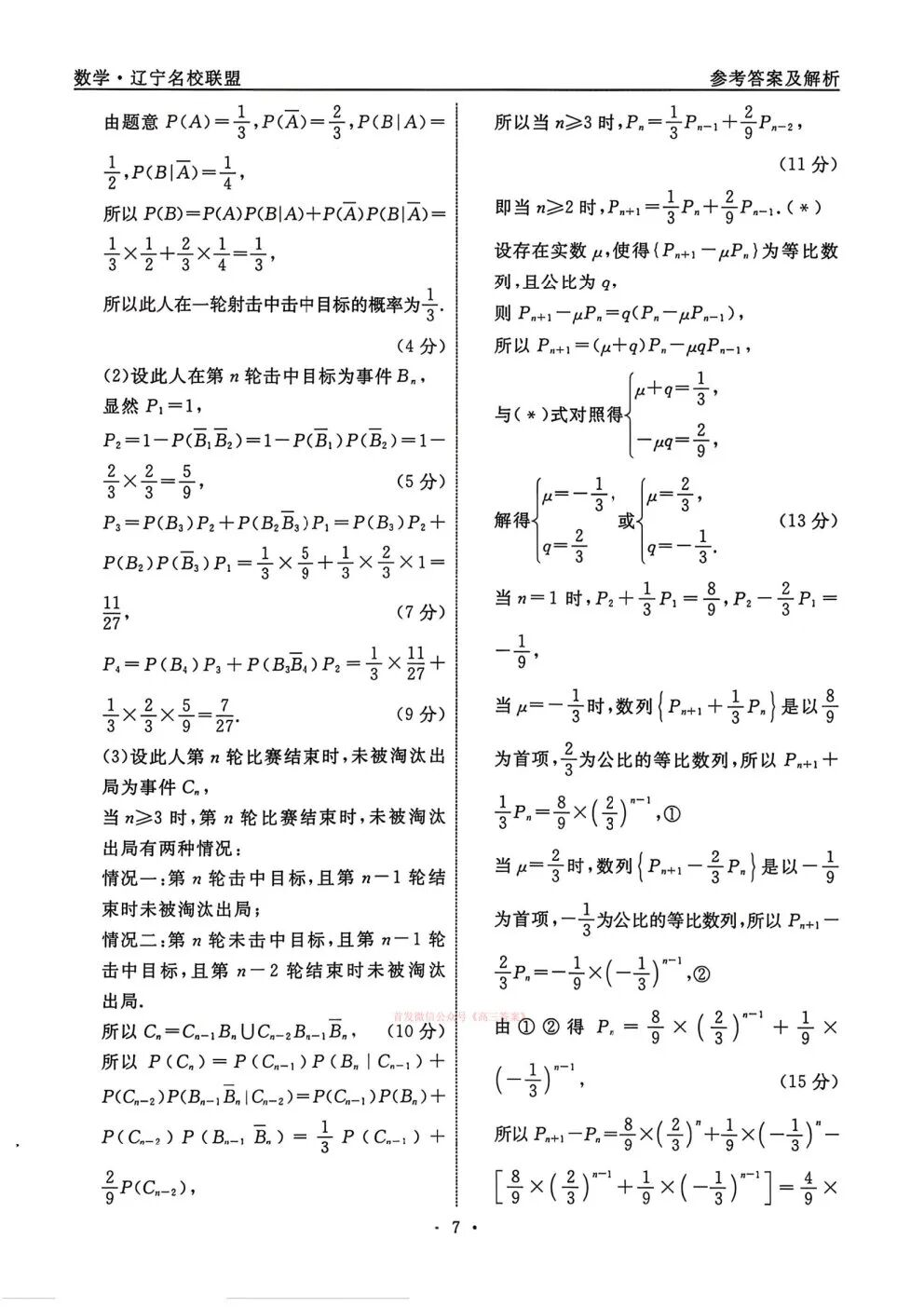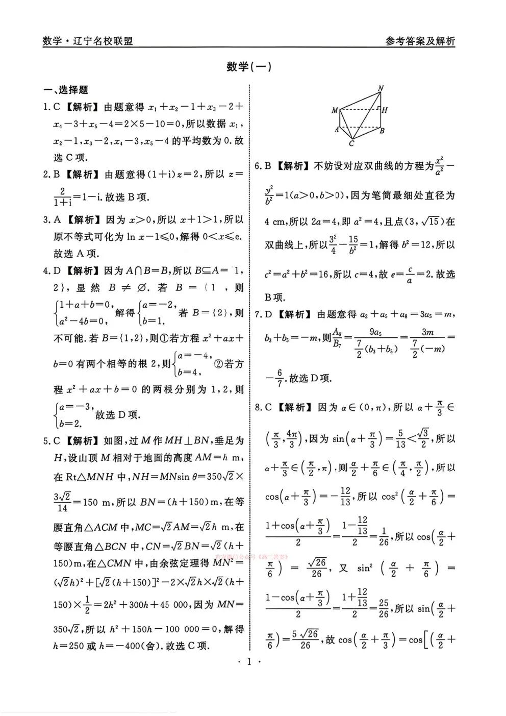 辽宁省名校联盟2026年高考模拟卷(调研卷)一答案