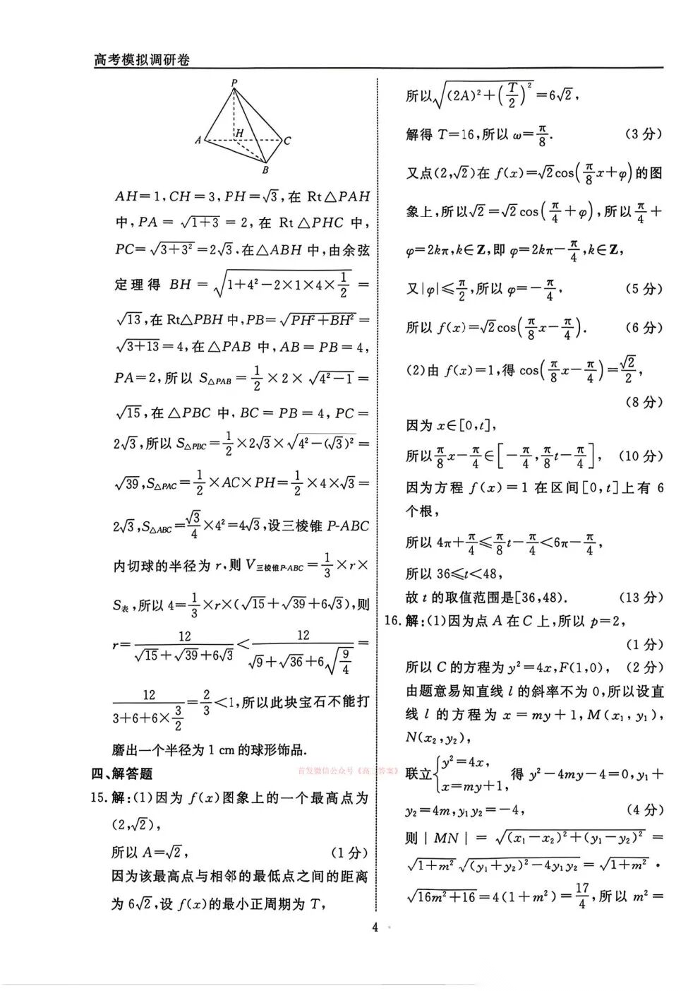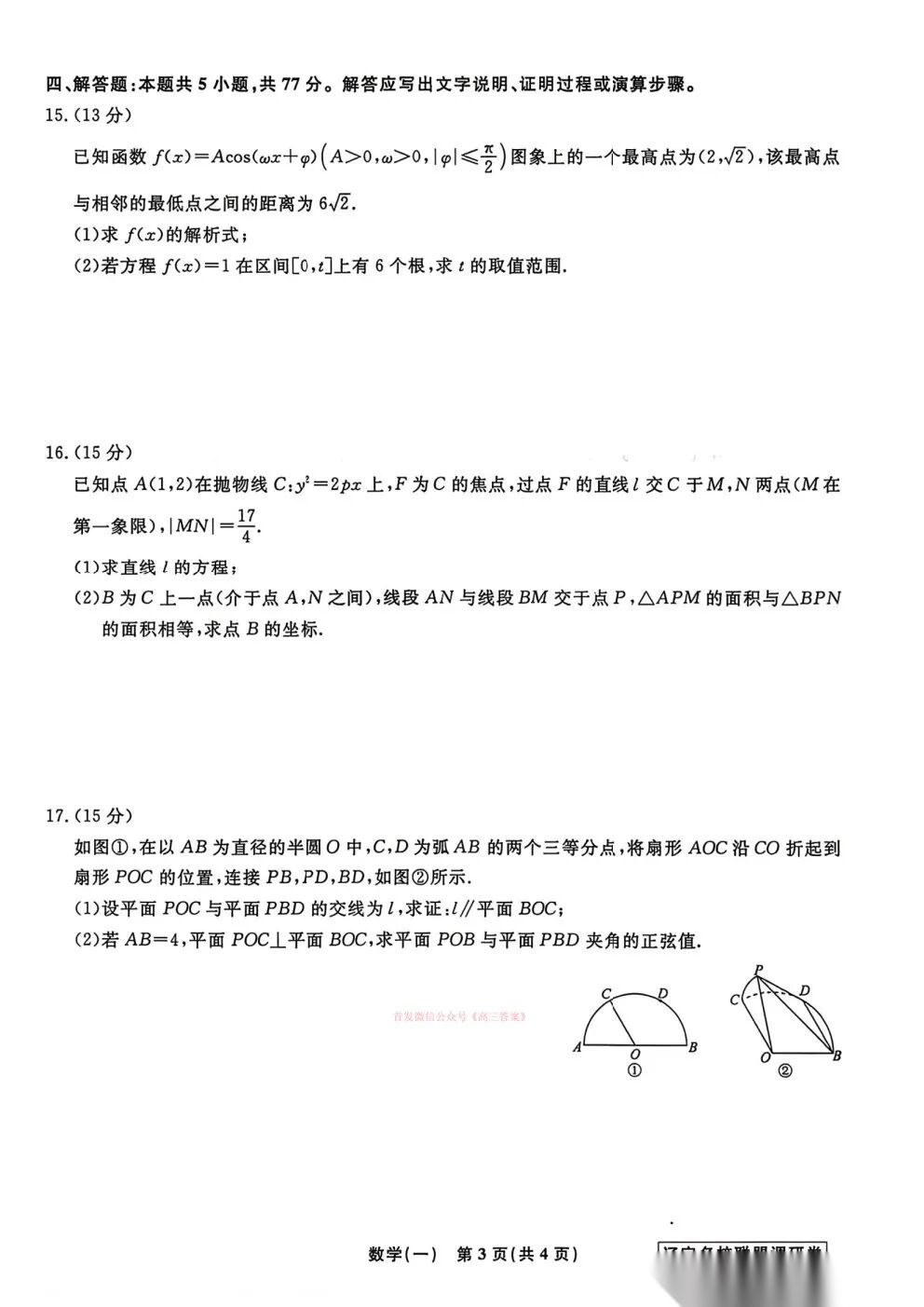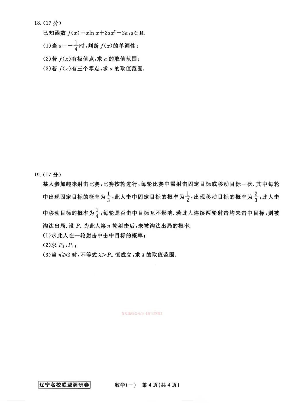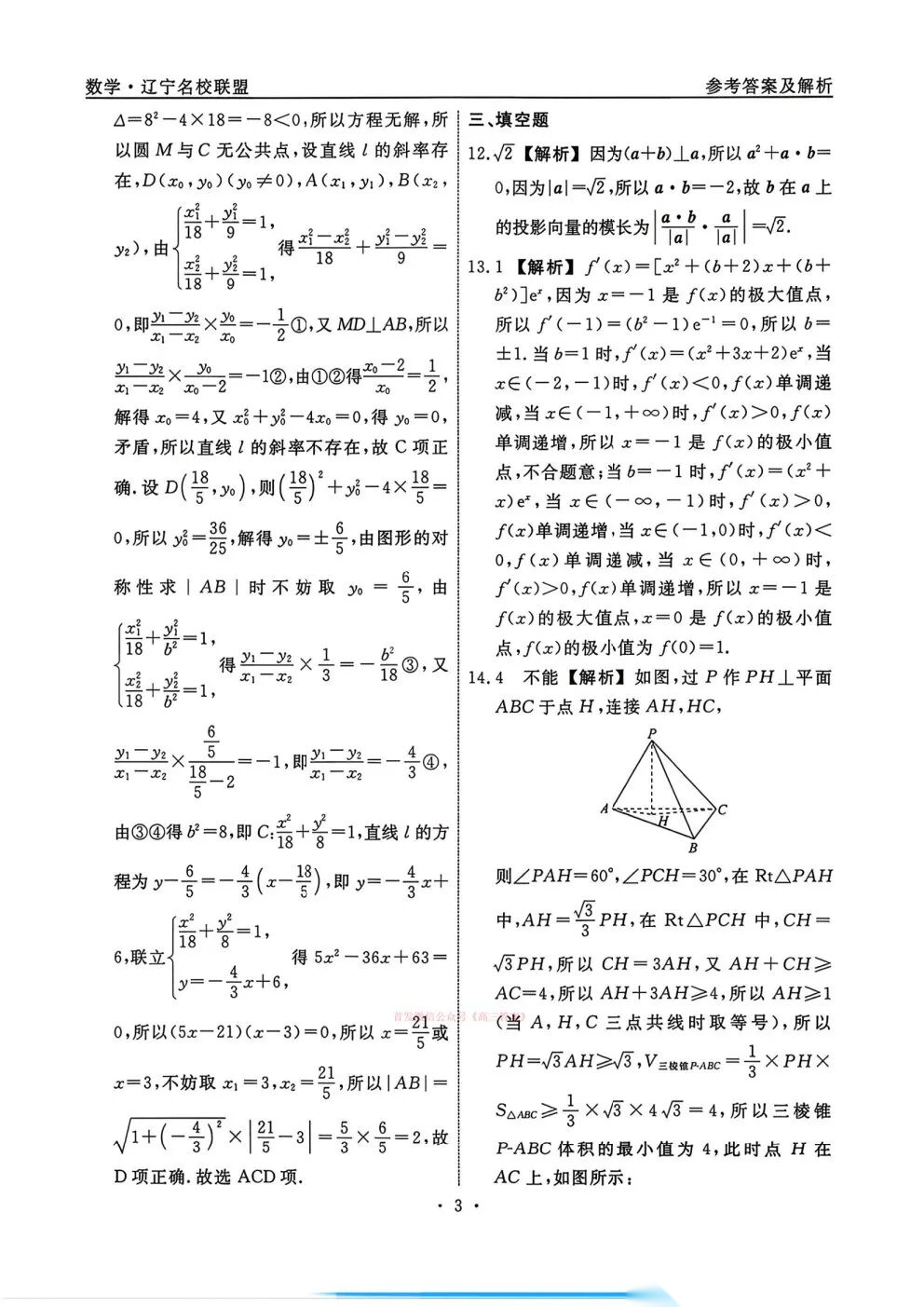 黑龙江省实验中学2026届高三3月联合模拟考试答案 黑龙江省实验中学2026届高三3月联合模拟考试答案