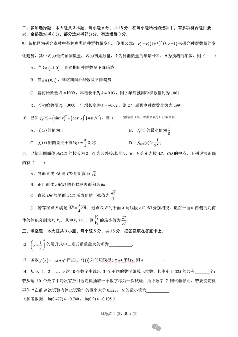 黑龙江省实验中学2026届高三3月联合模拟考试答案 黑龙江省实验中学2026届高三3月联合模拟考试答案