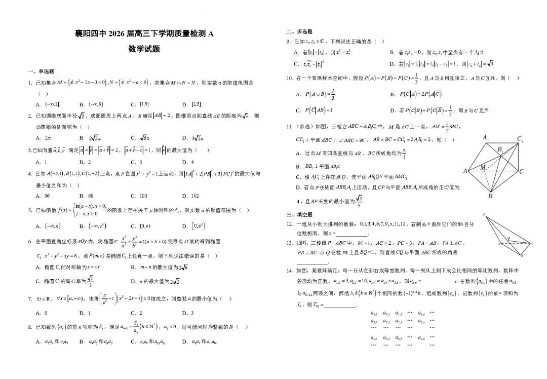 2026西南大学附属中学高三3月定时检测 2026西南大学附属中学高三3月定时检测