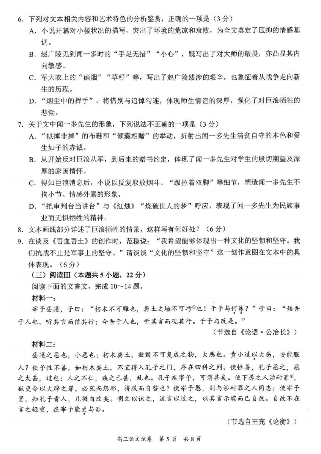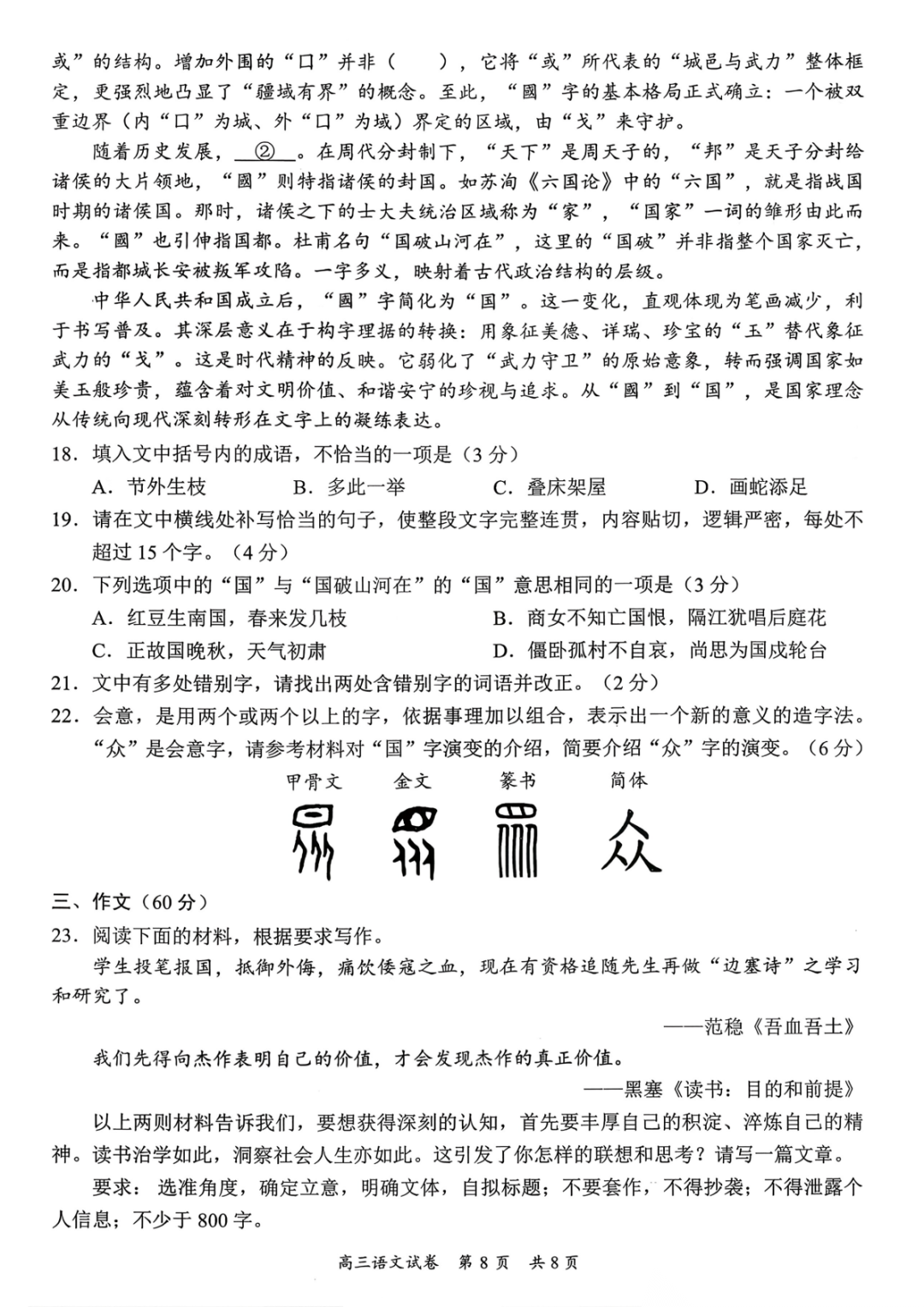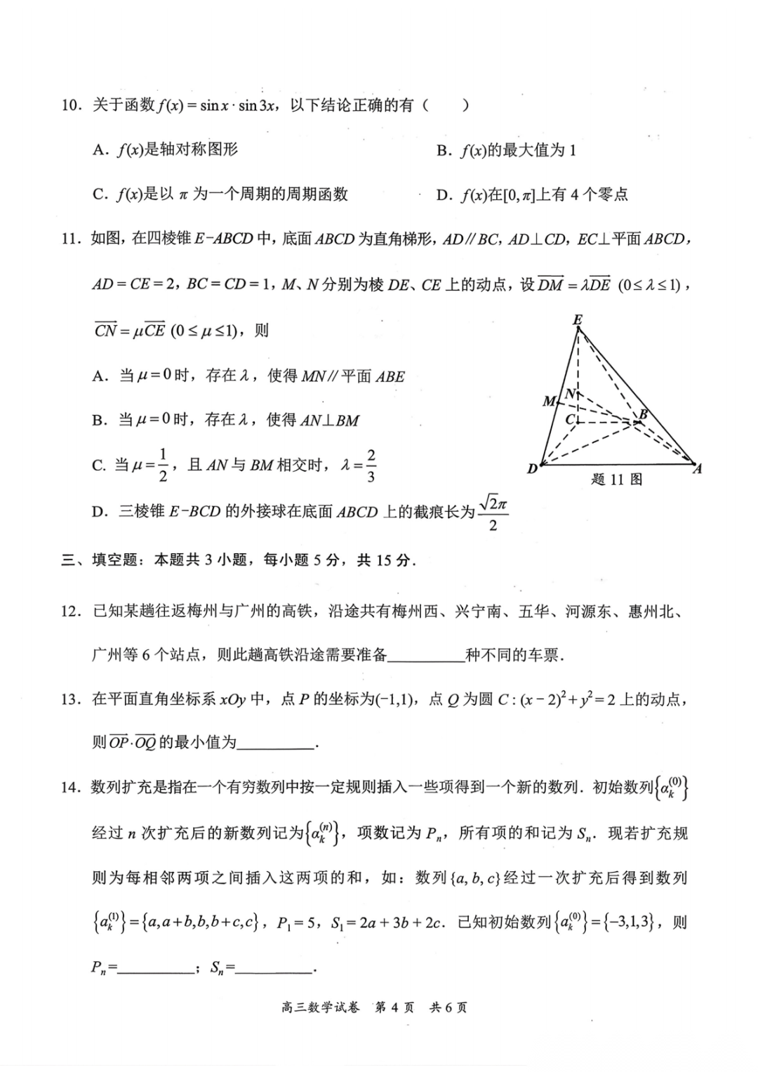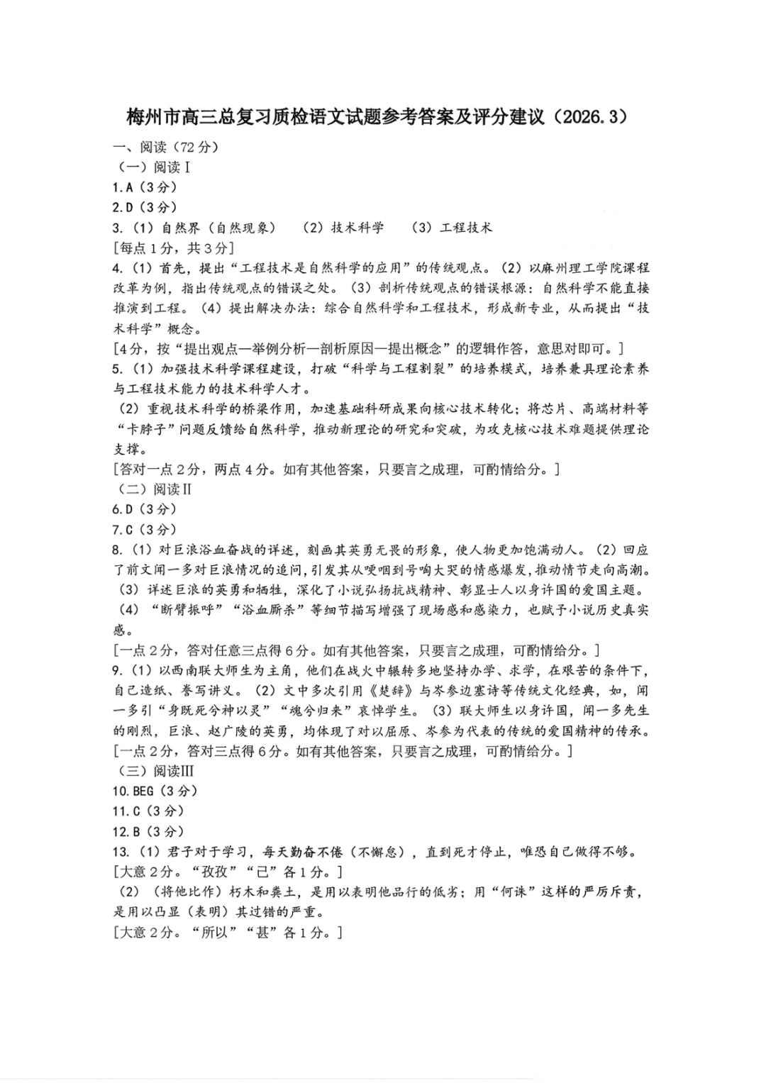 梅州市高三总复习质检试卷(一模·2026.3)第一天科目