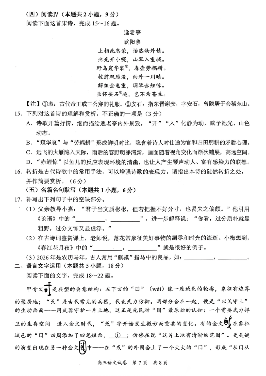 【全科】湖南省雅礼中学2026届高三月考试卷(七) 【全科】湖南省雅礼中学2026届高三月考试卷(七)