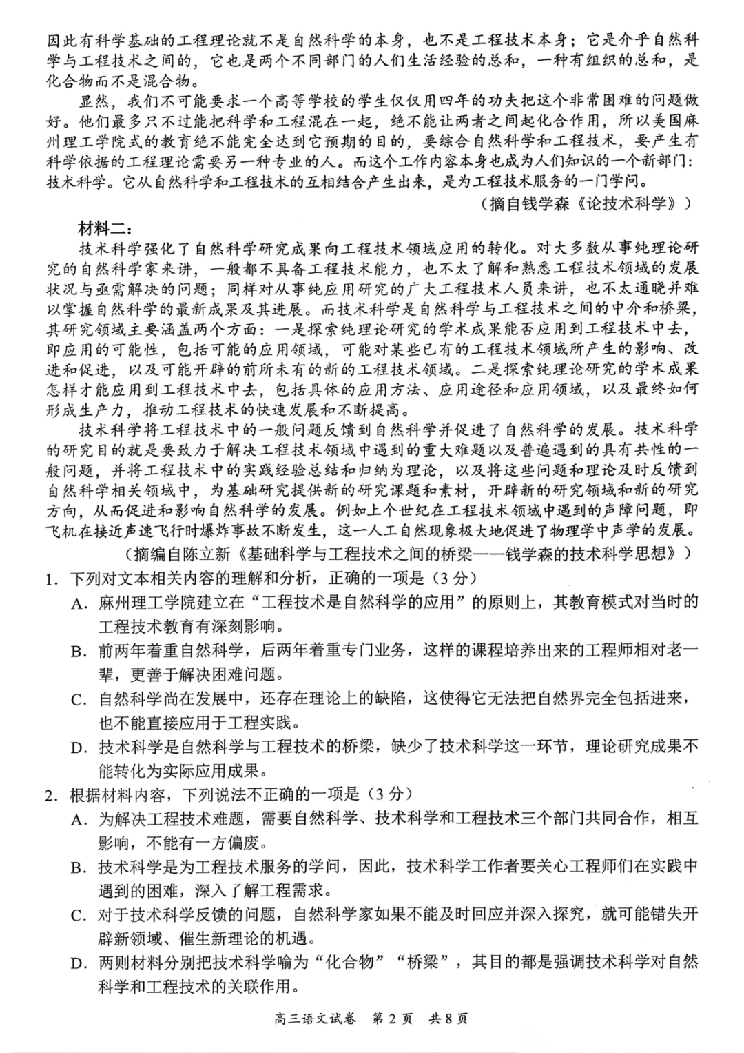 福建金科高三你那叫2月阶段性自测答案 福建金科高三你那叫2月阶段性自测答案