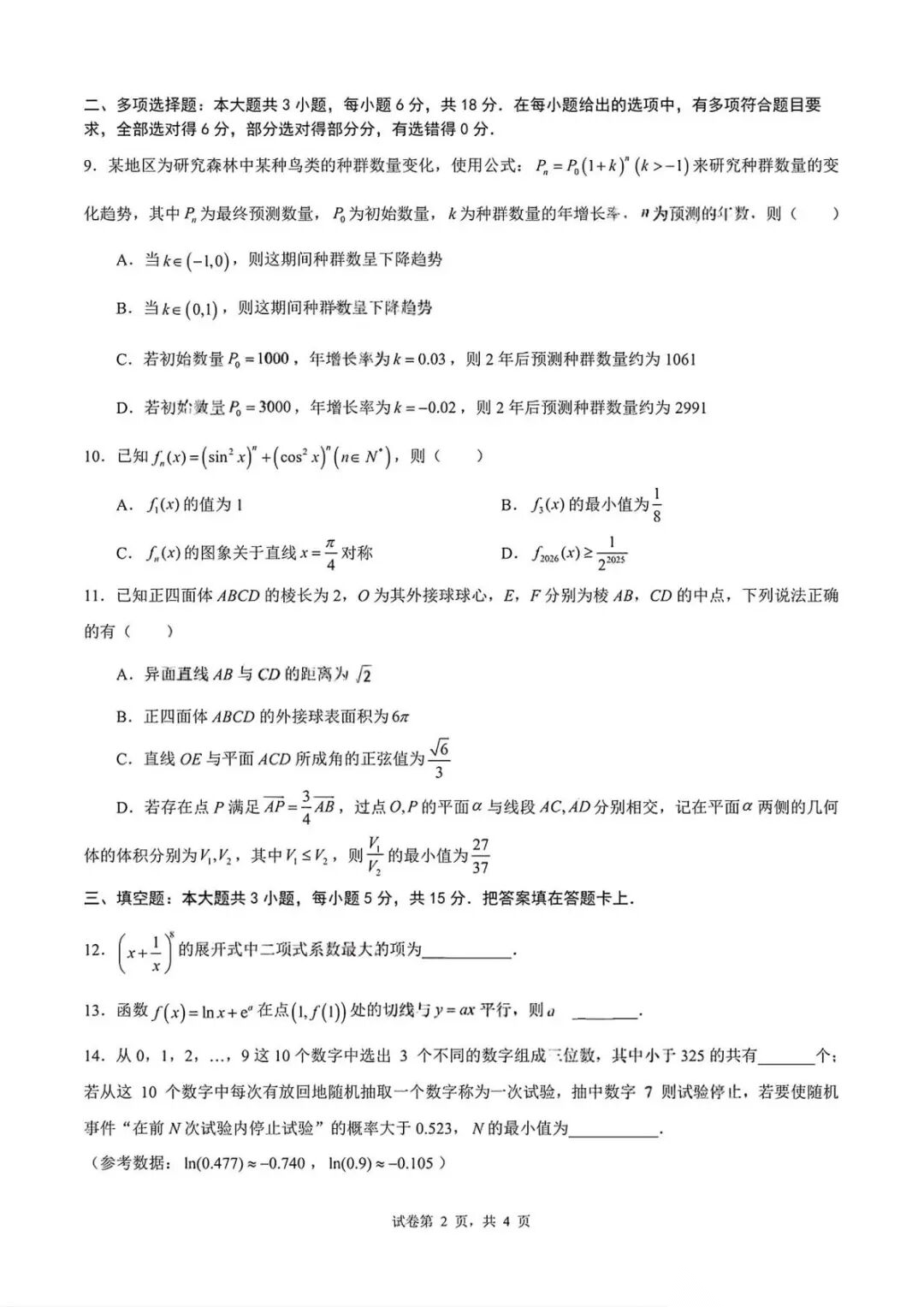 【超清无水印】:高三,【全科】四川成都市第七中学2026届高三下学期开学考