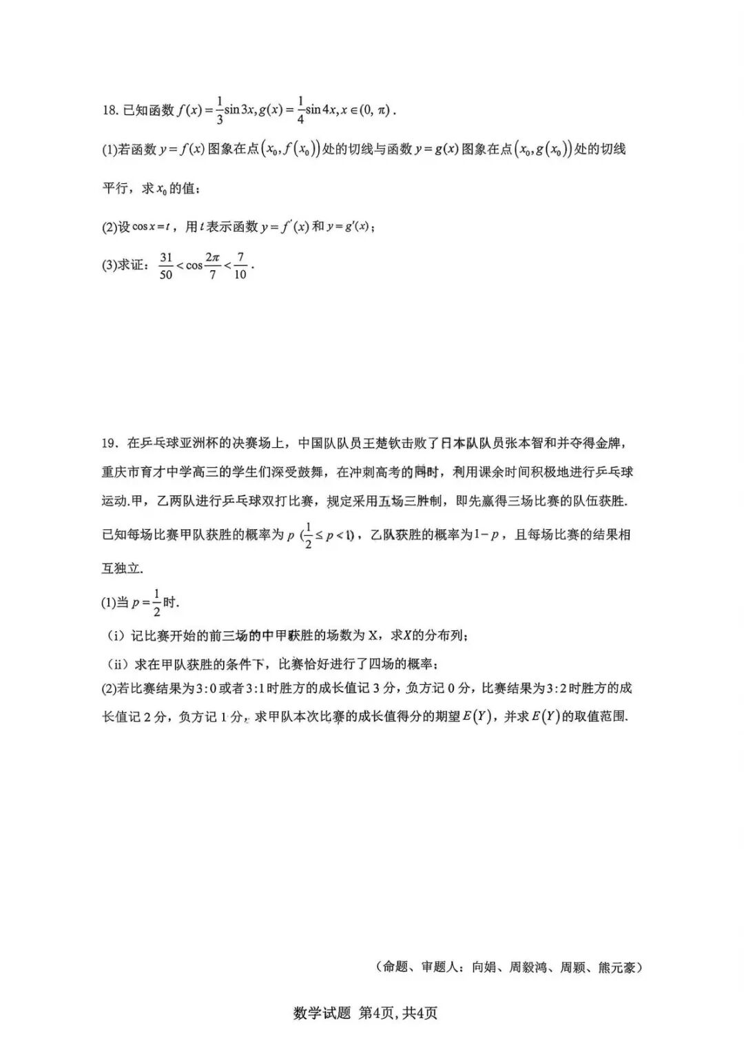 【超清无水印】:高三,【全科】重庆市育才中学校2026届高三下学期开学考试