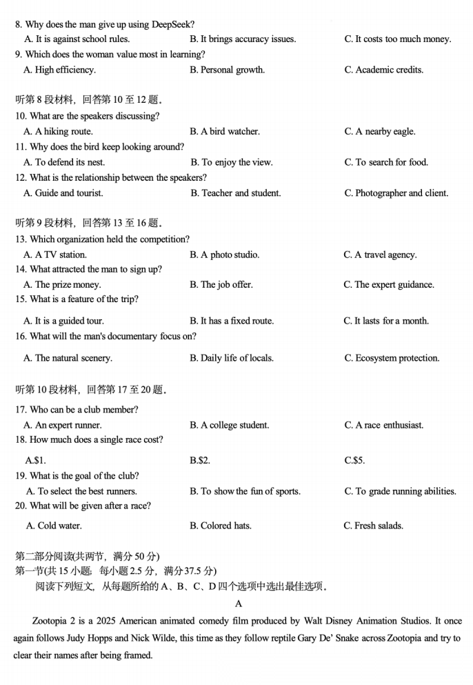 【全国前十高中】【四川卷】四川成都市第七中学2025-2026学年度2026届高三下学期入学(开学)考试(2.27-2.28) 全科试卷+答案 【全国前十高中】【四川卷】四川成都市第七中学2025-2026学年度2026届高三下学期入学(开学)考试(2.27-2....
