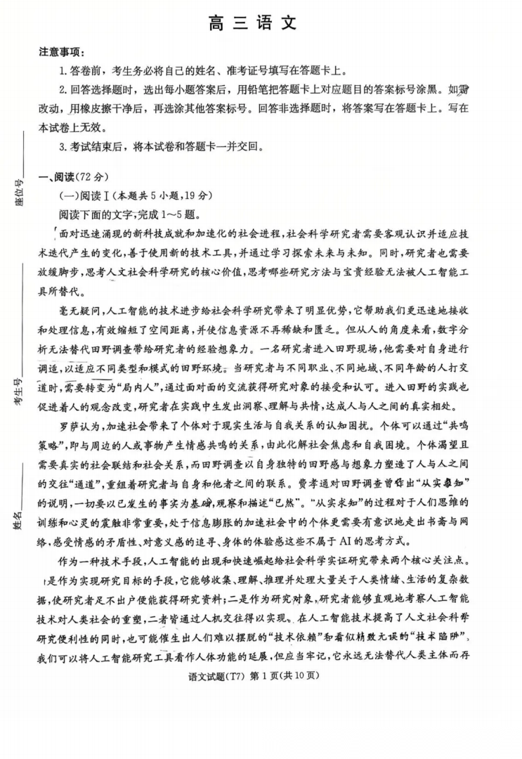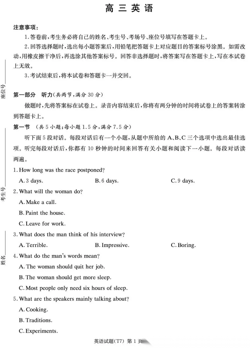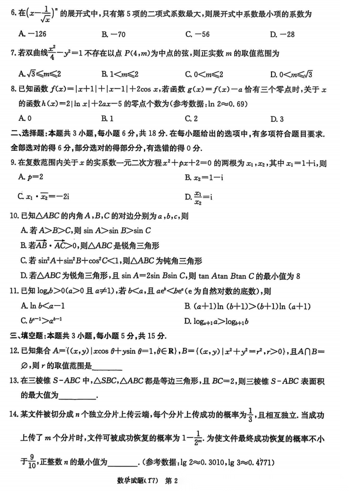 【全国前十高中】【四川卷】四川成都市第七中学2025-2026学年度2026届高三下学期入学(开学)考试(2.27-2.28) 全科试卷+答案 【全国前十高中】【四川卷】四川成都市第七中学2025-2026学年度2026届高三下学期入学(开学)考试(2.27-2....