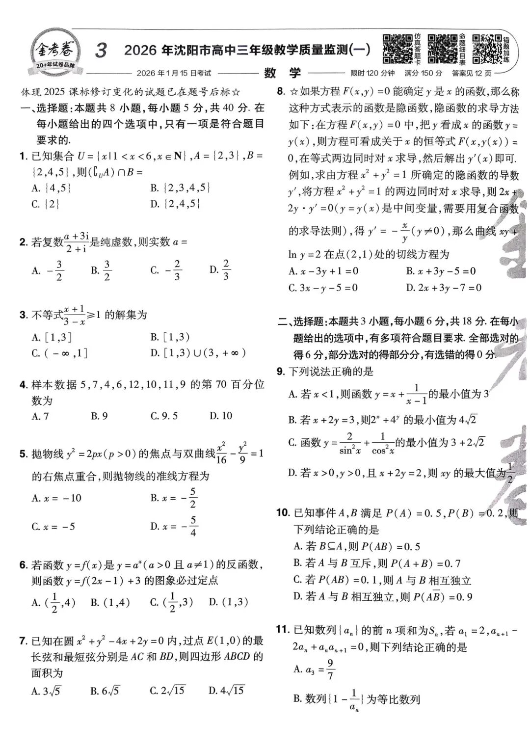 金考卷特快专递第6期《一模精选卷》