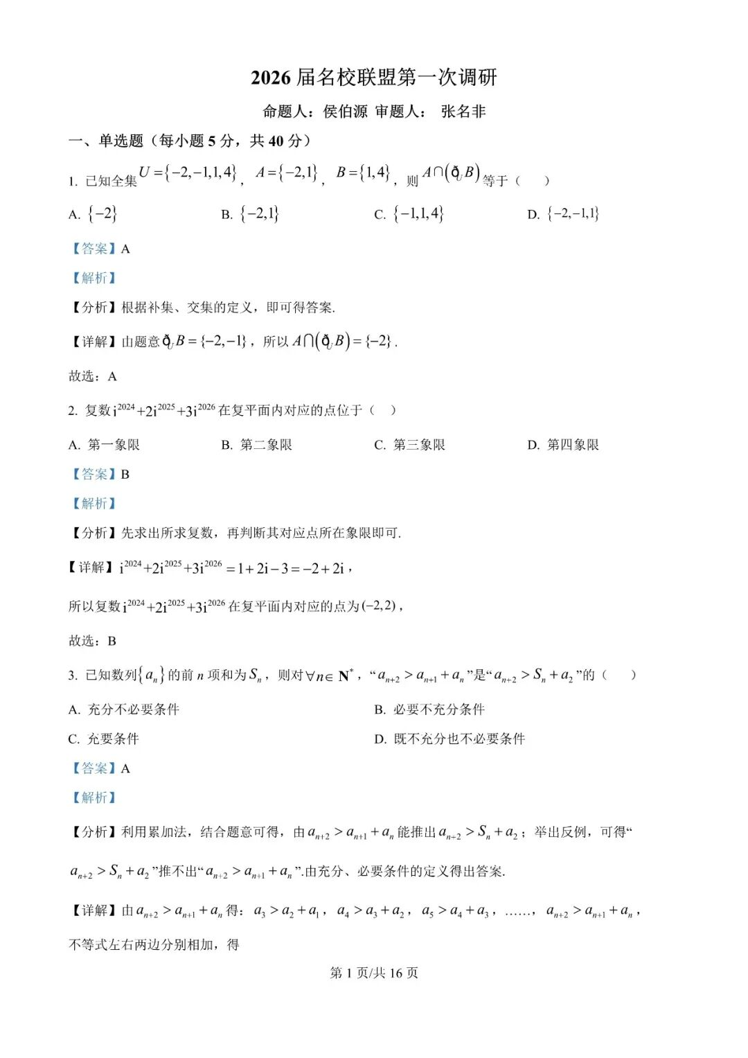 【全科】西南大学附属中学校2025-2026学年高三下学期开学 【全科】西南大学附属中学校2025-2026学年高三下学期开学