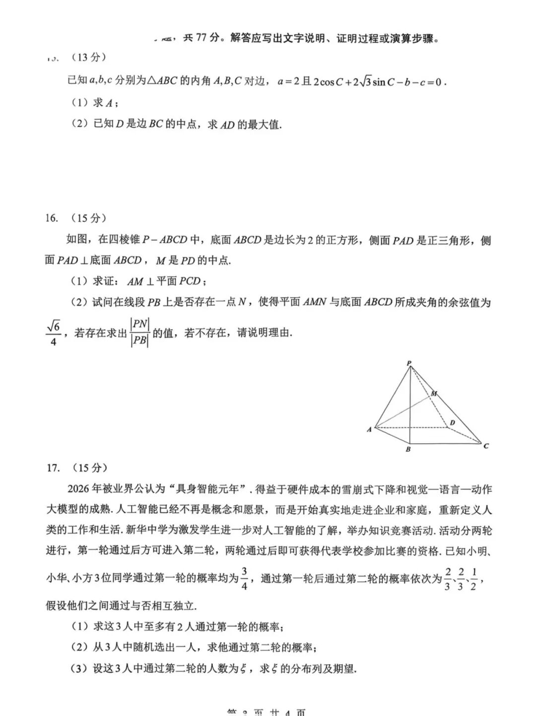 【全科】四川省成都市第七中学2025—2026学年度下期高2026届开学考试 【全科】四川省成都市第七中学2025—2026学年度下期高2026届开学考试