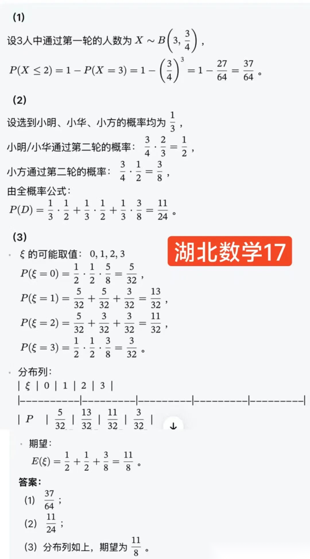 【自做数学解析】湖北高三楚天协作体2月开学考试暨新八校协作体数学答案!【含数学试卷】查漏补缺
