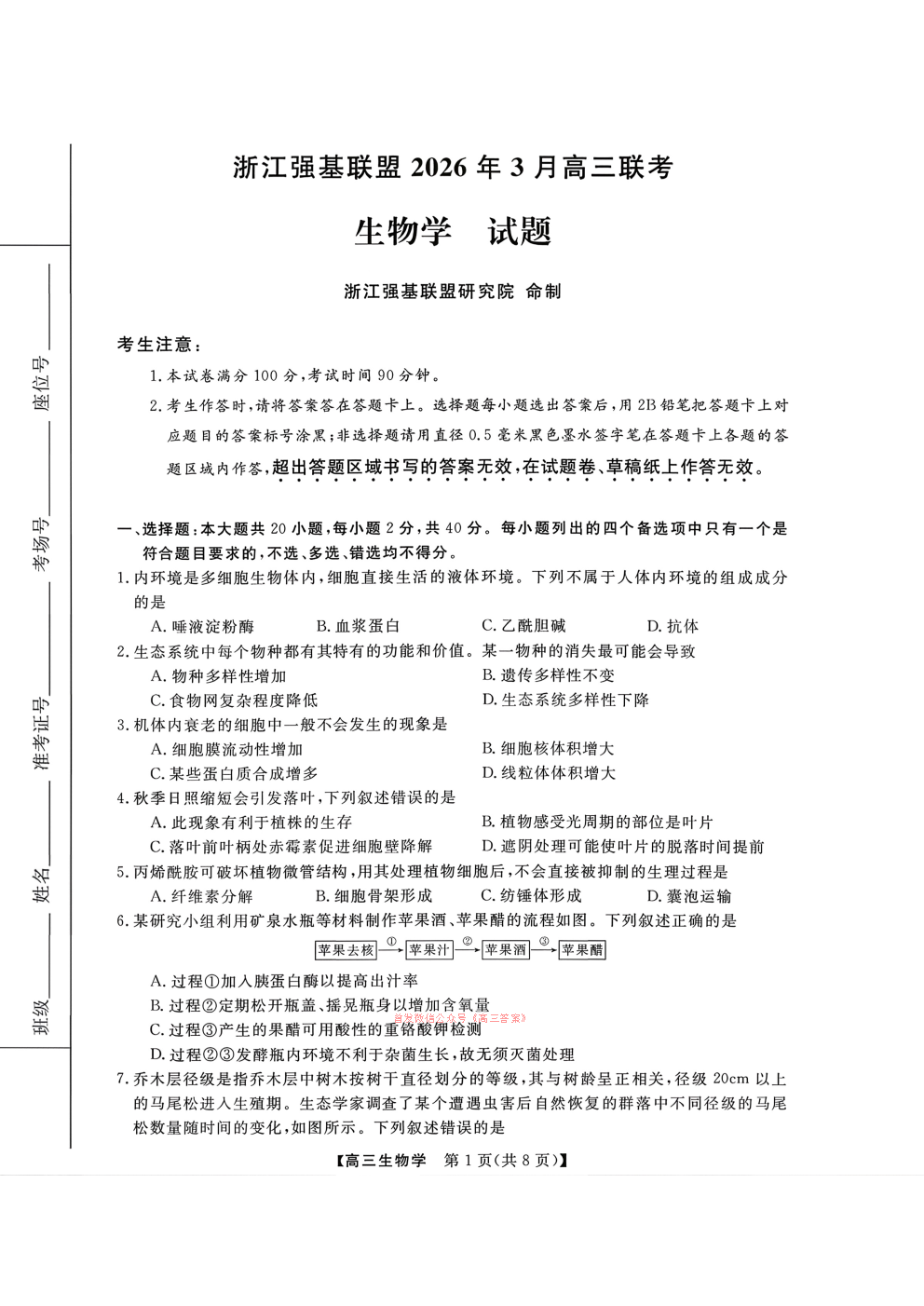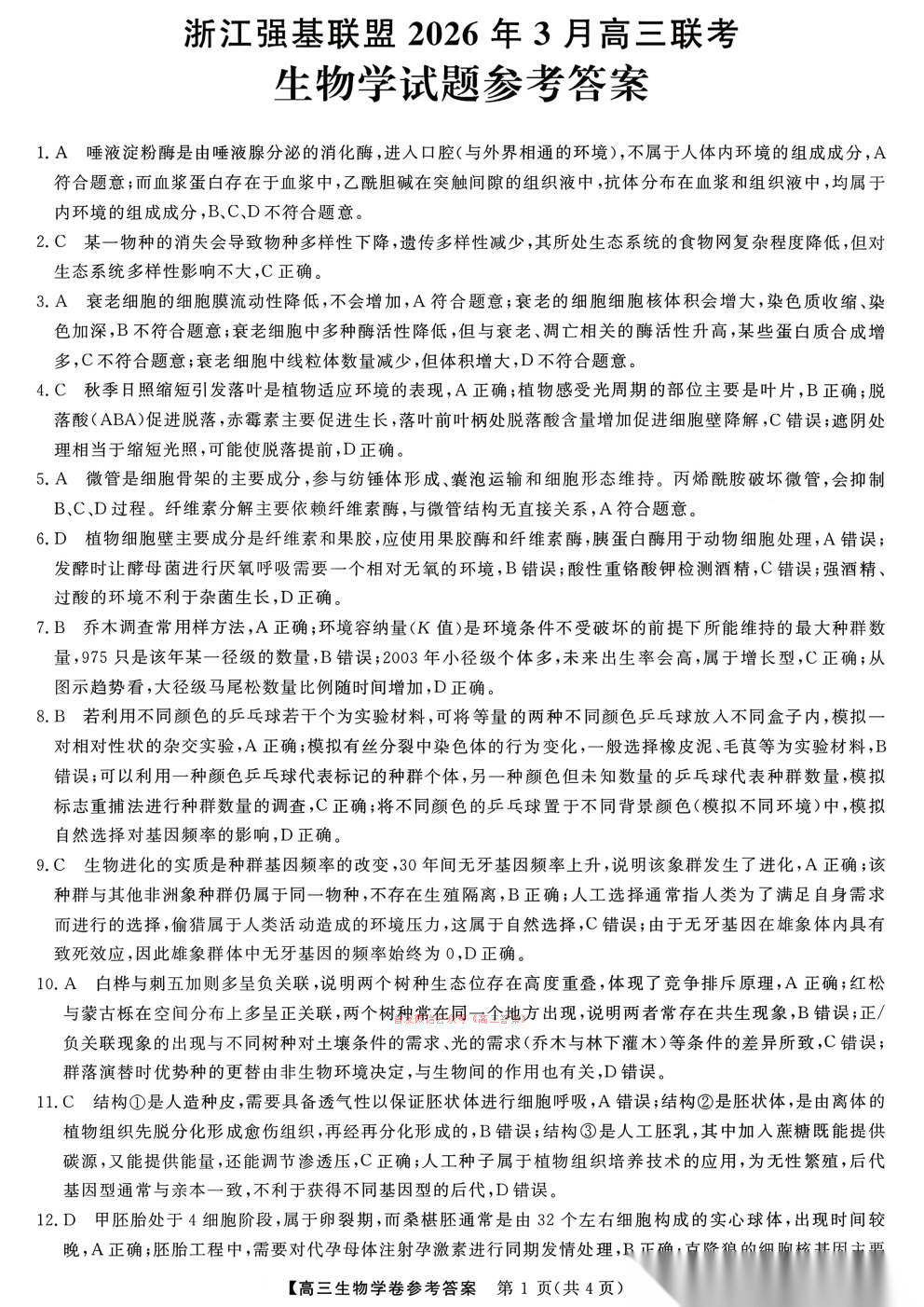 浙江强基联盟2026年3月高三联考答案
