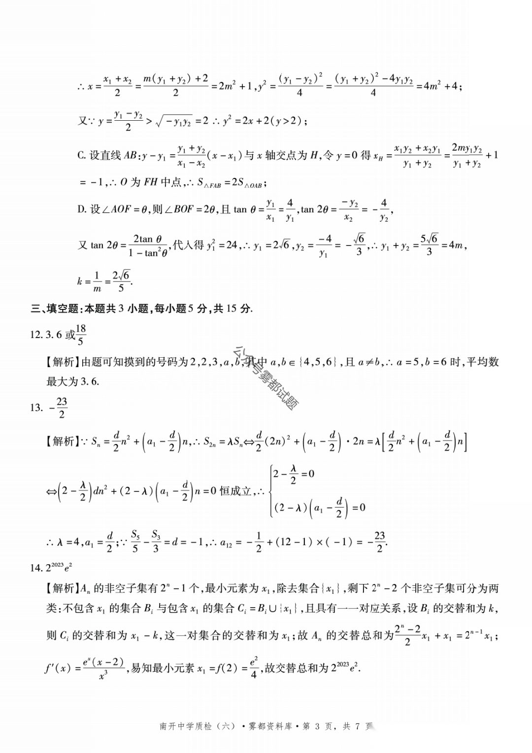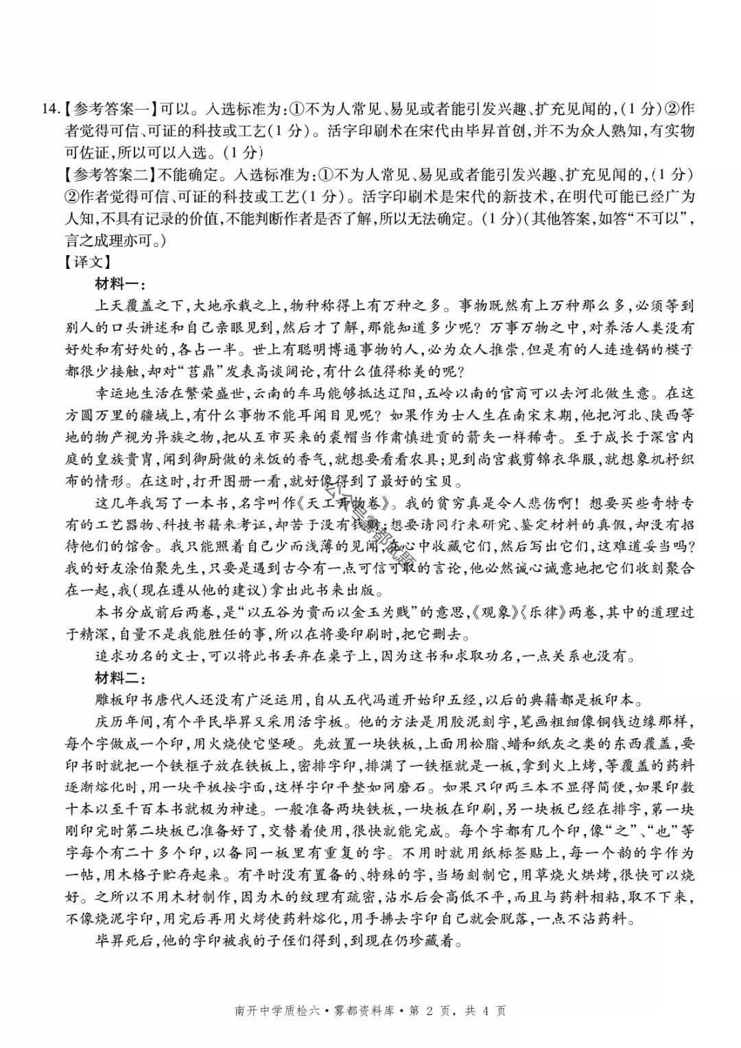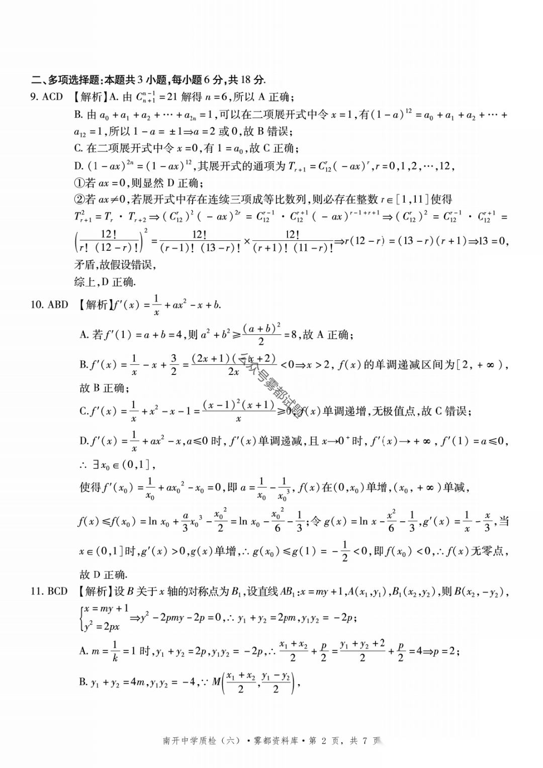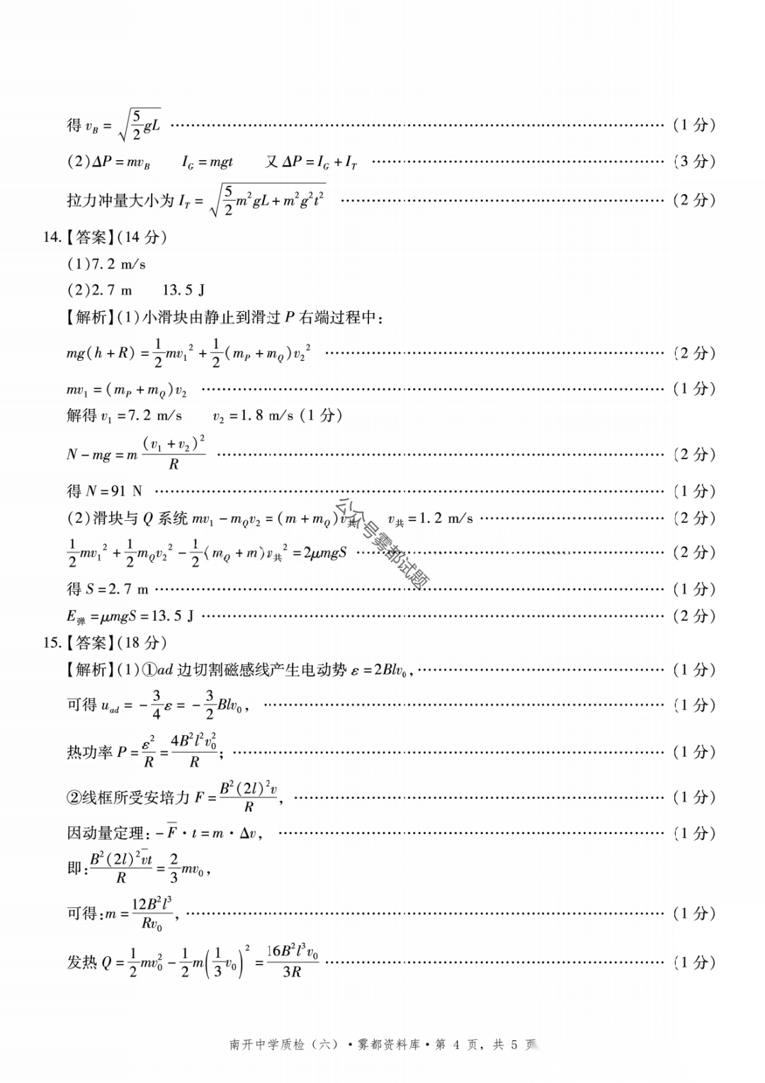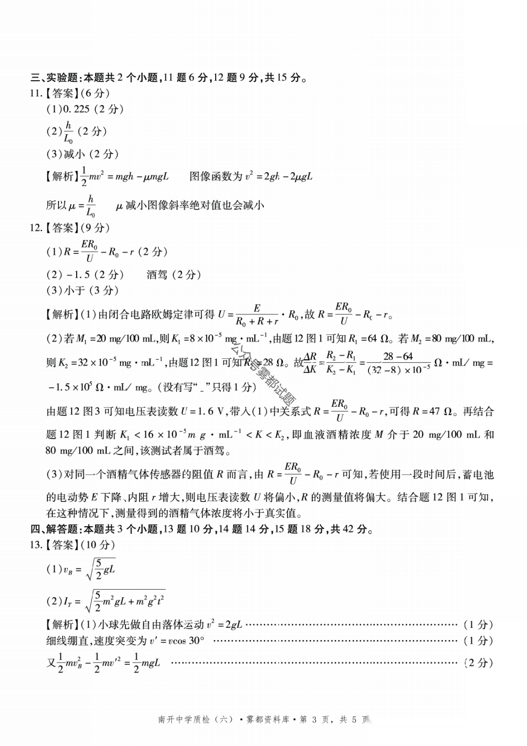 2026届重庆南开中学高三3月联考六语文、数学、物理、历史科目公布