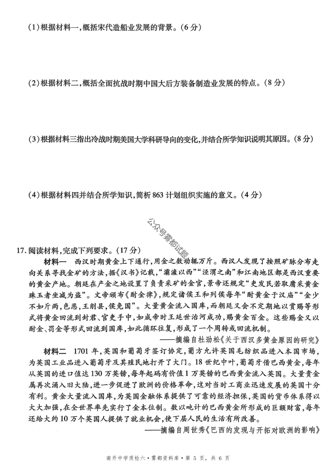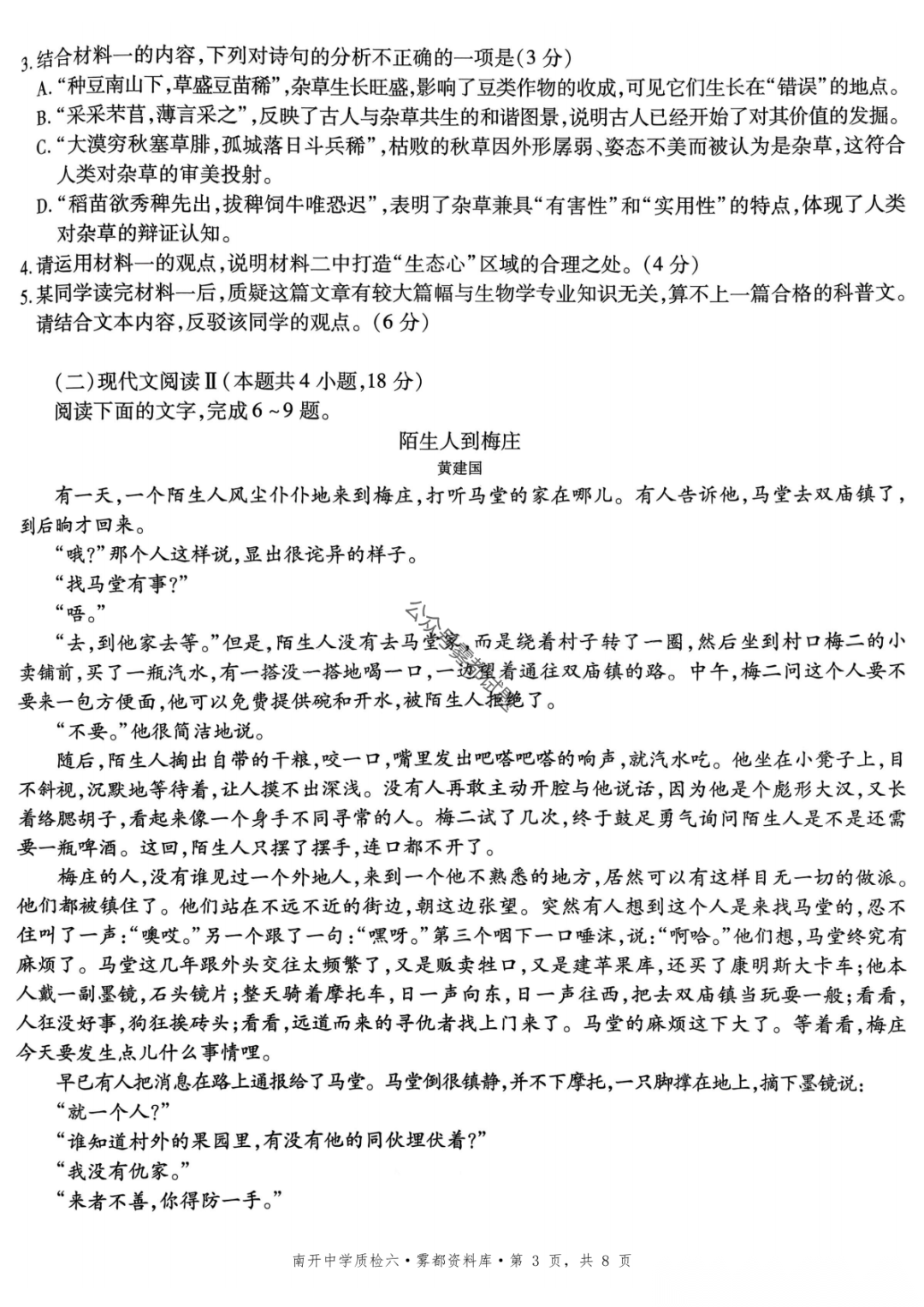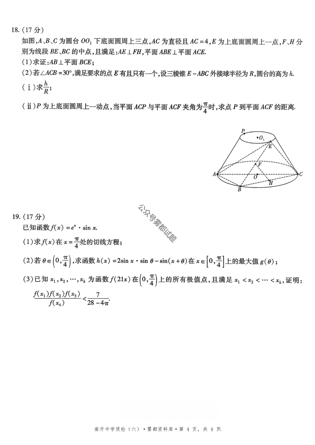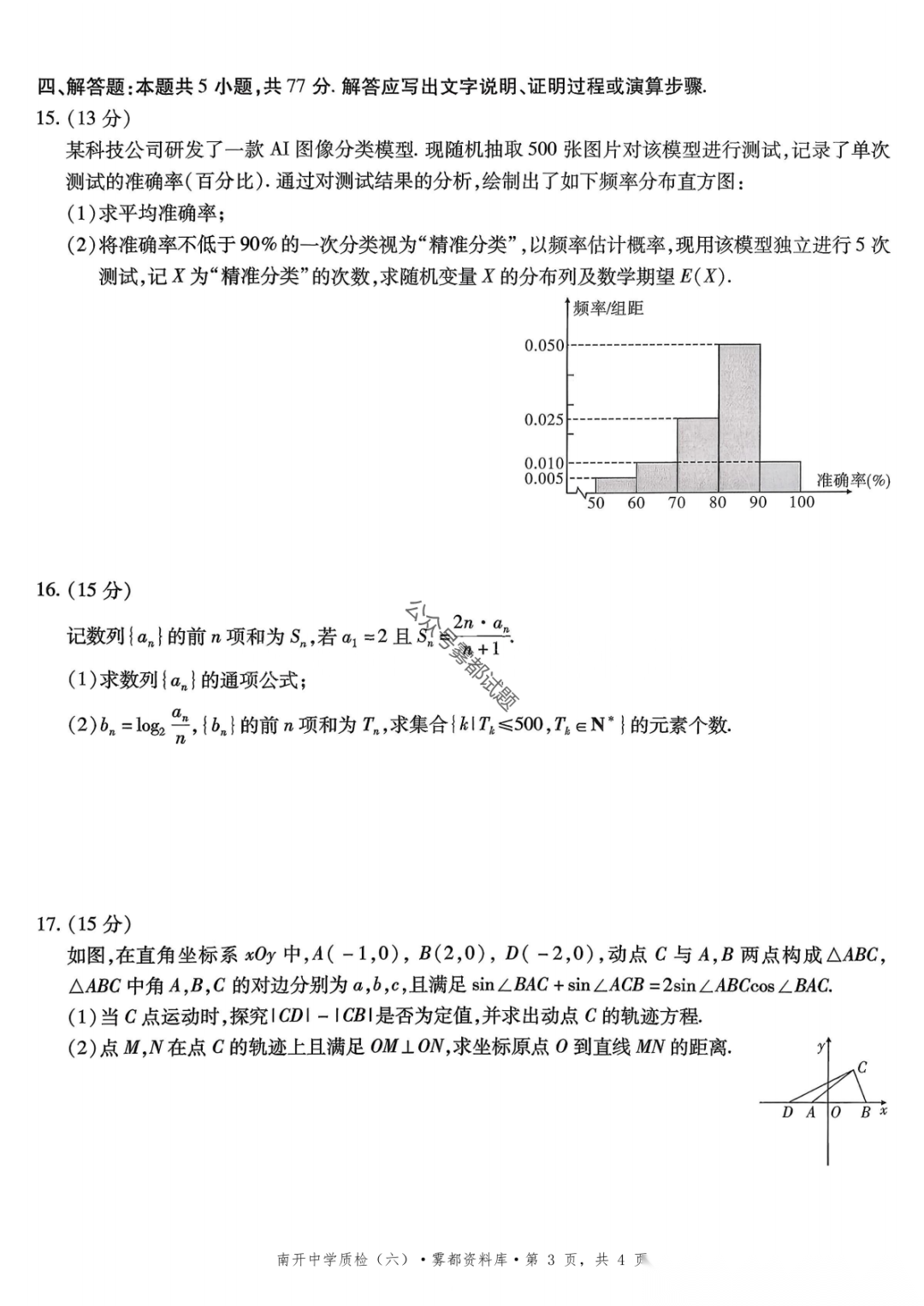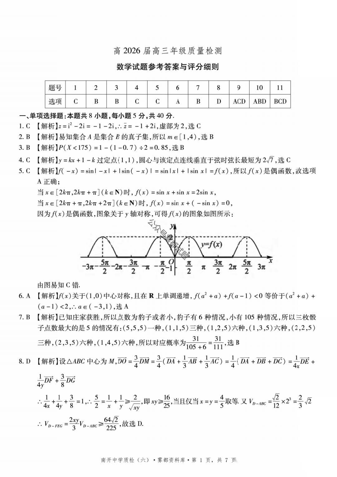 2026届重庆南开中学高三3月联考六语文、数学、物理、历史科目公布