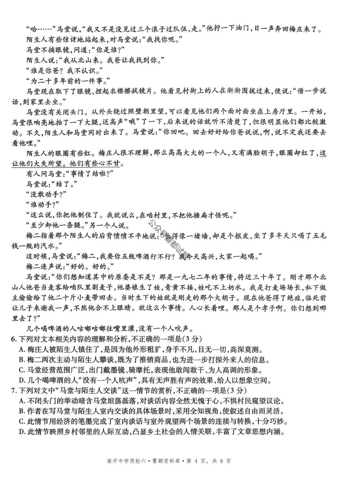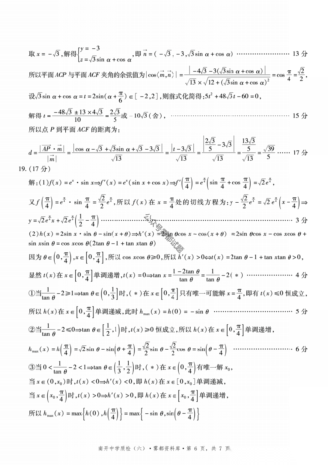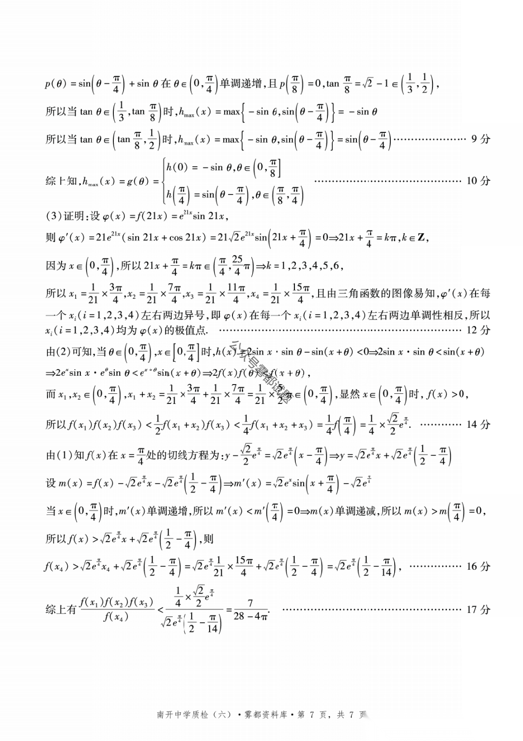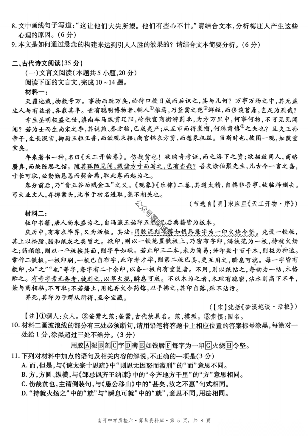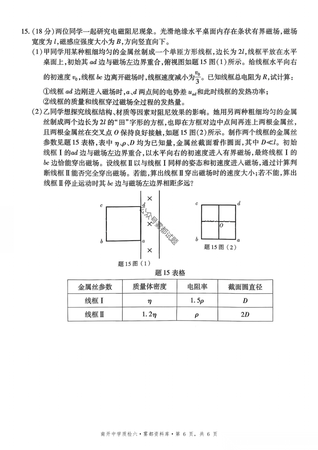 2026届重庆南开中学高三3月联考六语文、数学、物理、历史科目公布