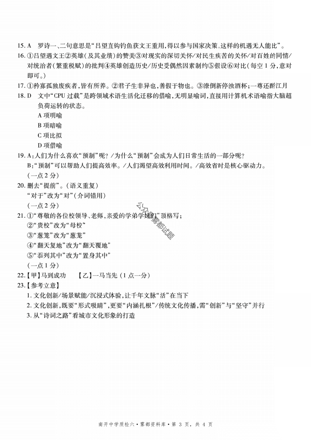 济南市高三3月开学学情调研测试答案 济南市高三3月开学学情调研测试答案
