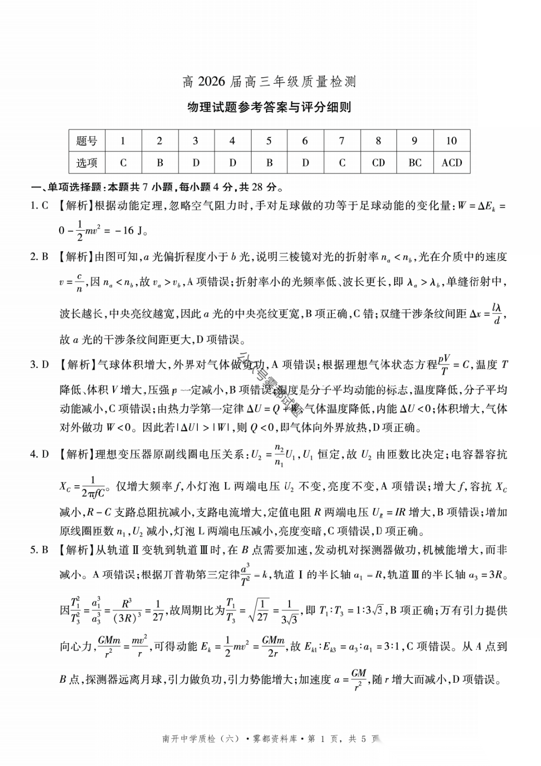 【深圳一模】2026年深圳市高三年级第一次调研考试答案 【深圳一模】2026年深圳市高三年级第一次调研考试答案