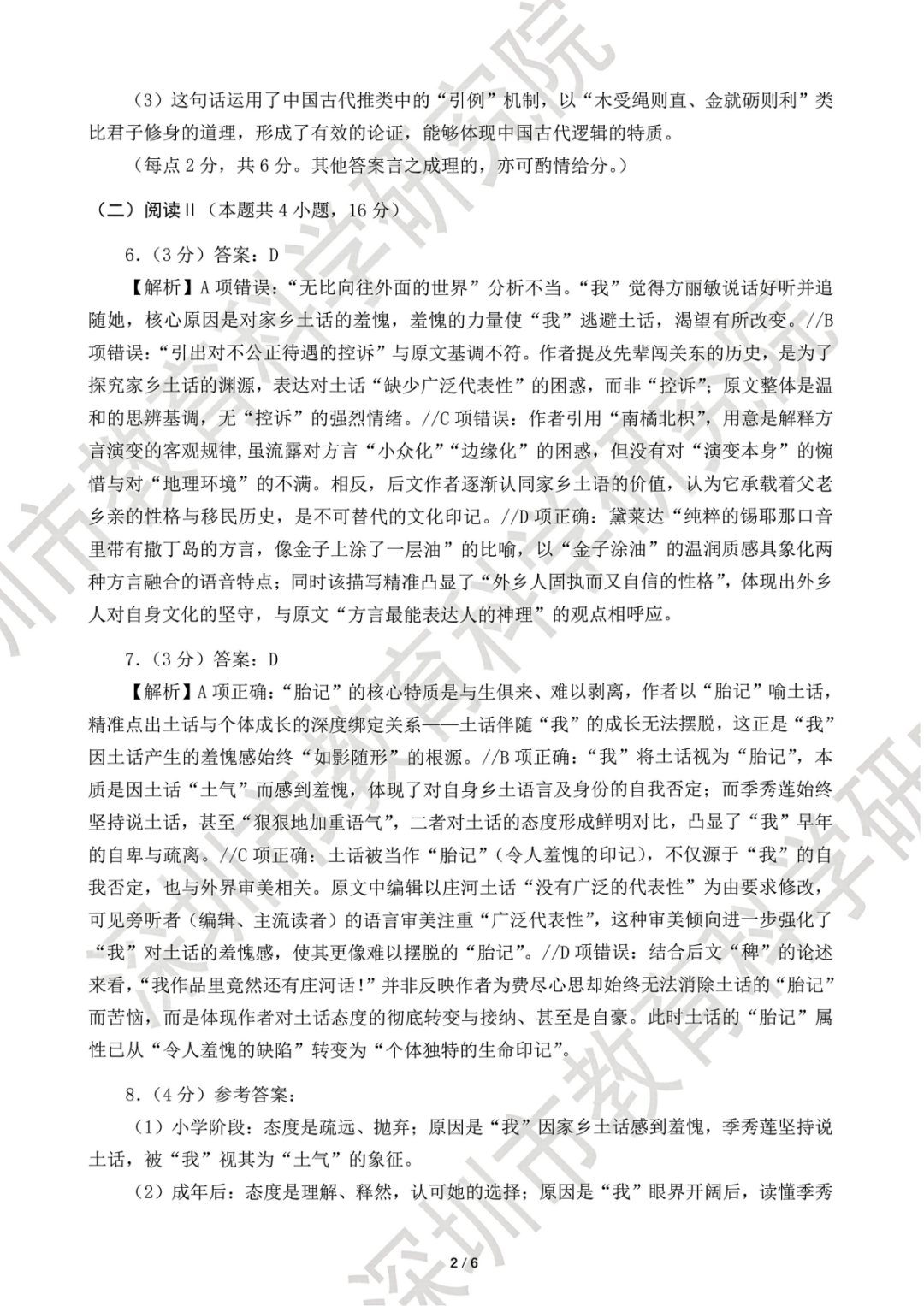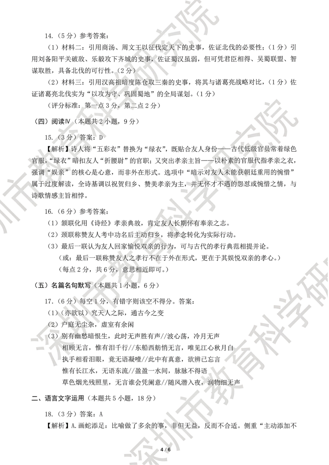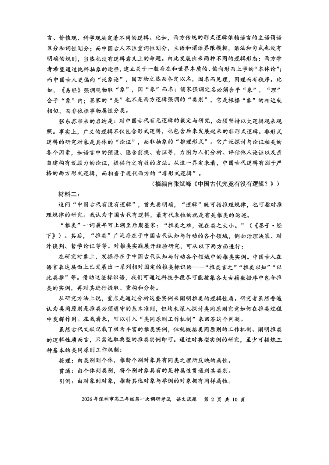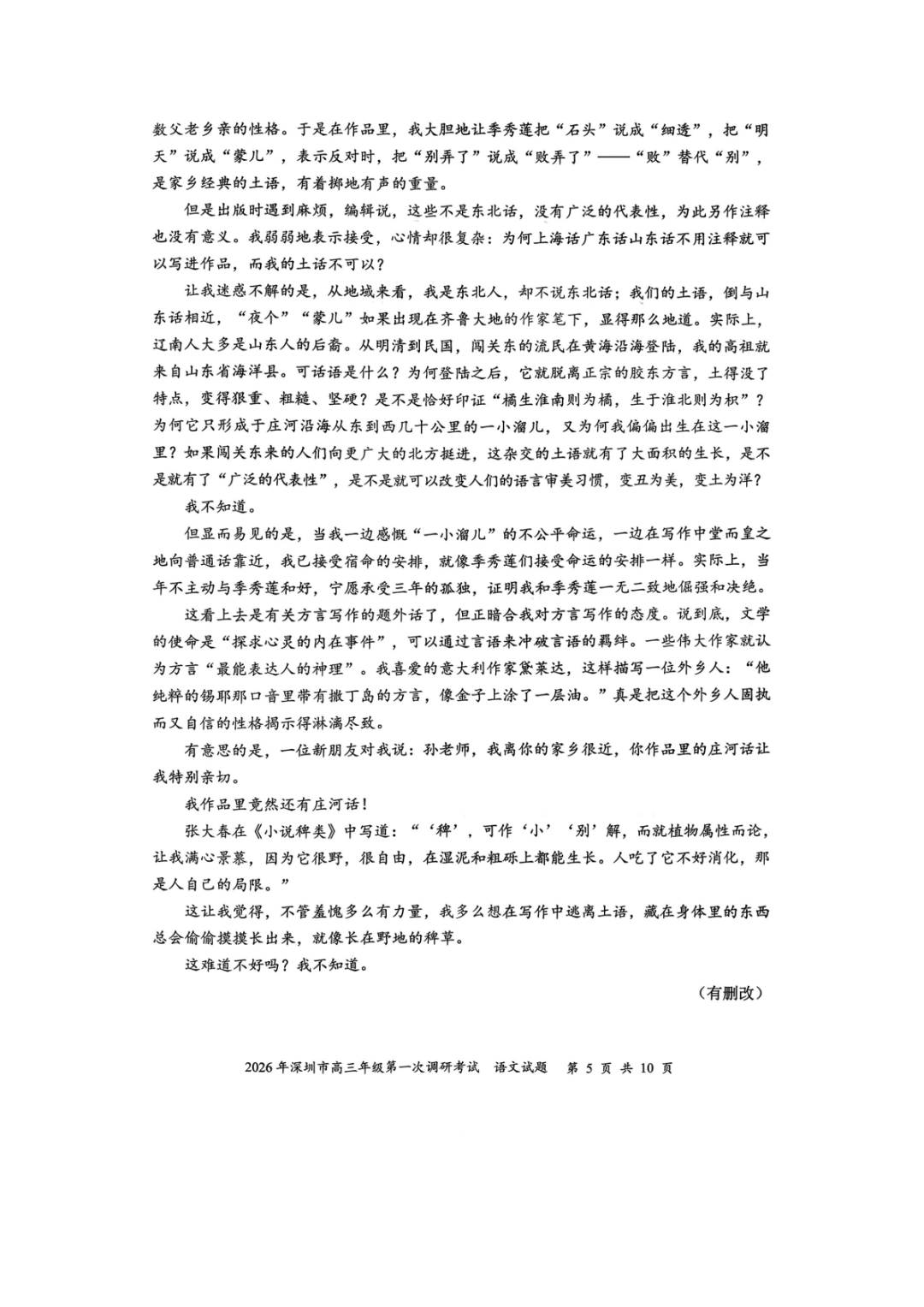 2026年深圳高三一模语文、数学试卷及参考答案