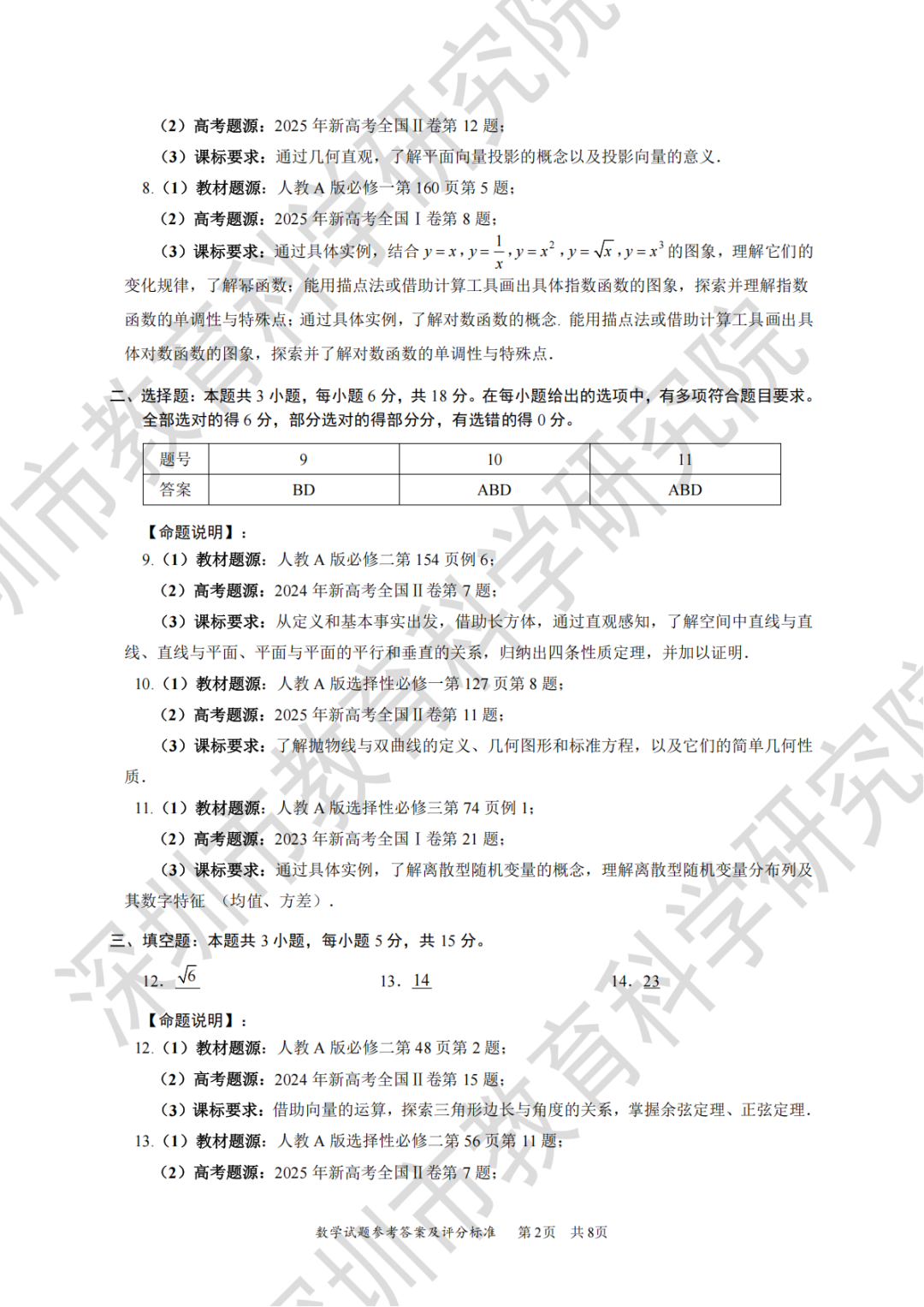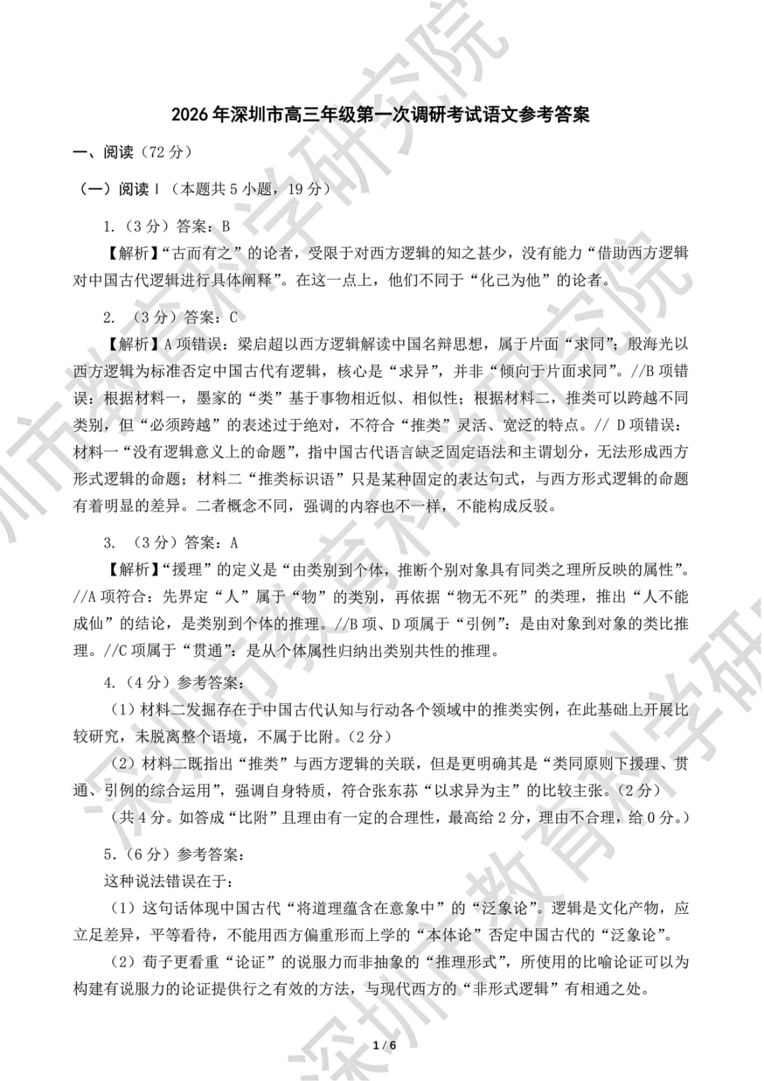 【深圳一模】2026年深圳市高三年级第一次调研考试答案 【深圳一模】2026年深圳市高三年级第一次调研考试答案