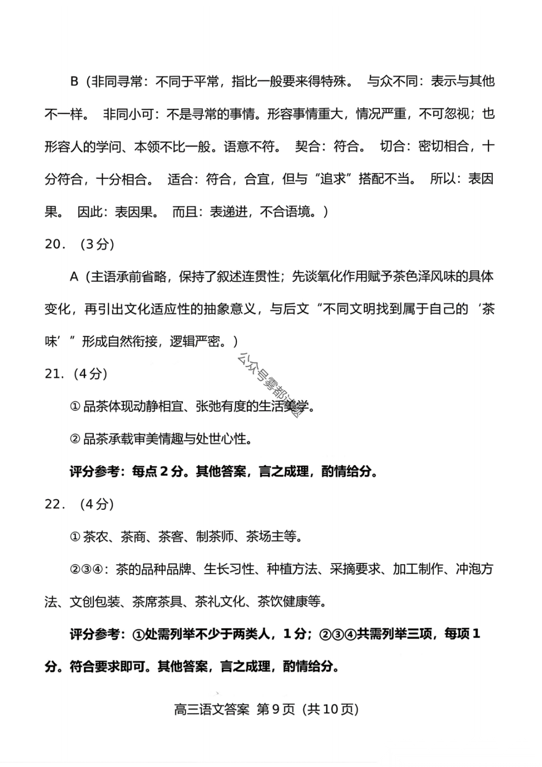 浙江强基联盟2026年3月高三联考答案 浙江强基联盟2026年3月高三联考答案