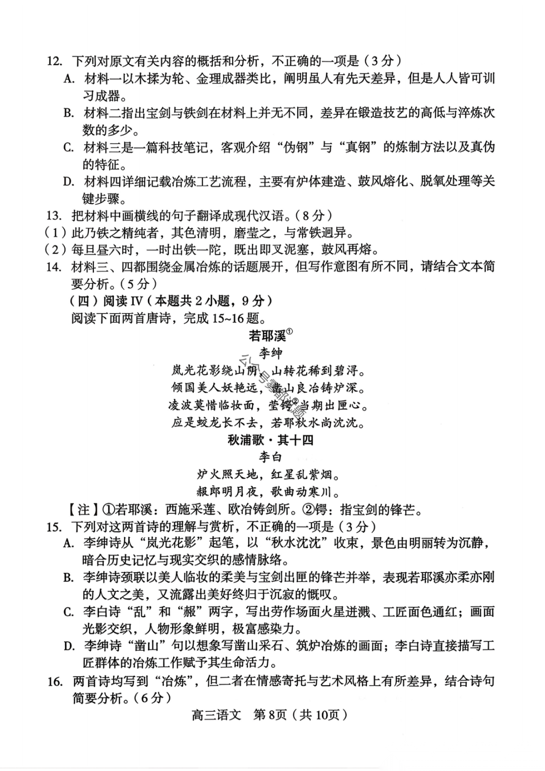 2026年深圳高三一模语文、数学试卷及参考答案 2026年深圳高三一模语文、数学试卷及参考答案